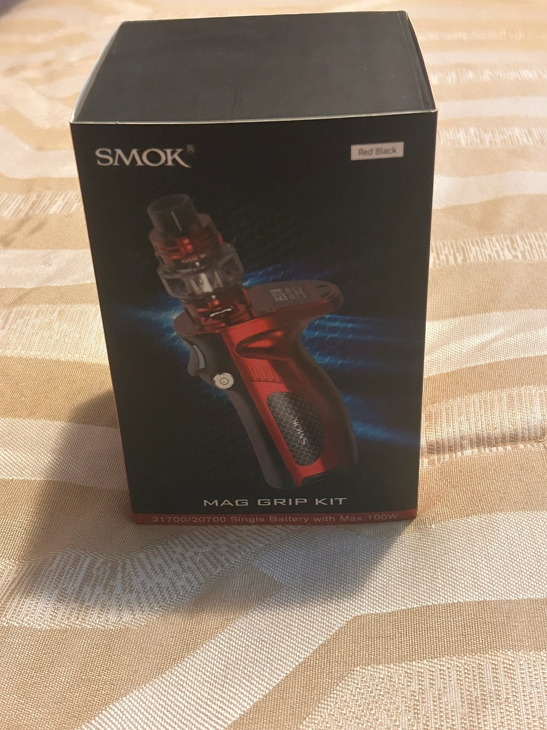 SMOK Mag Grip kit with a red and black colour scheme. Includes the mod, tank, coil, and charging cable.