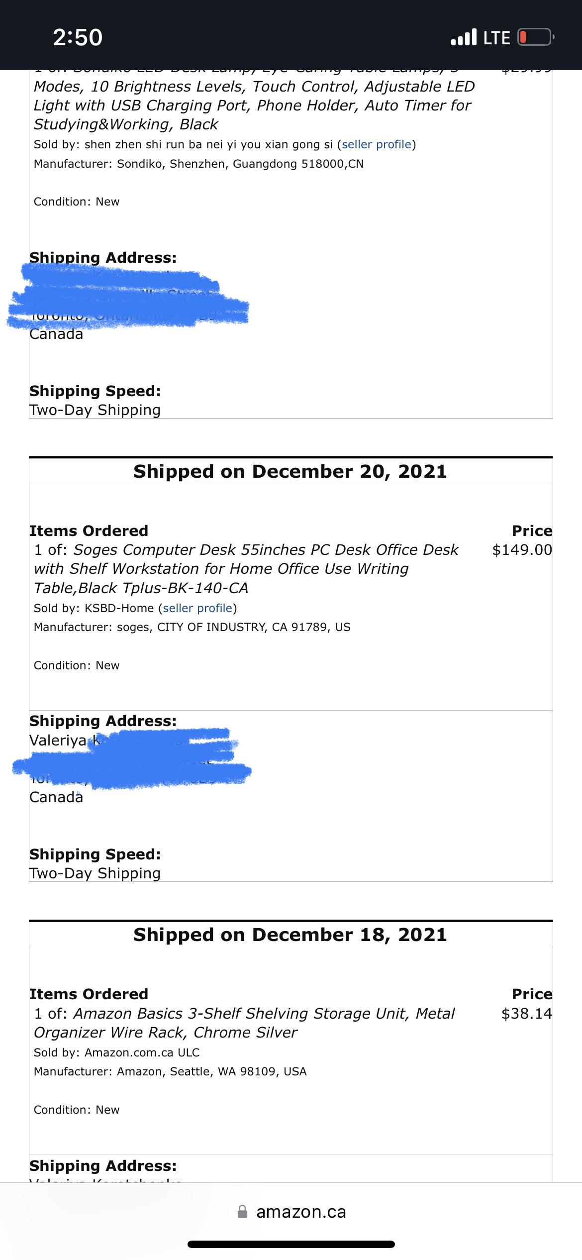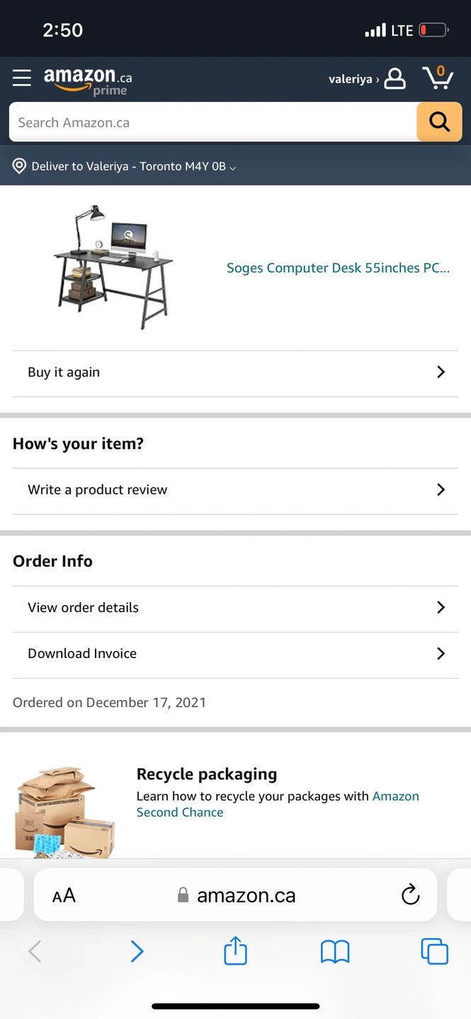 Note that the listing features a different colour and size. The colour I have is black and the size is 55 inches (order details screenshot attached).