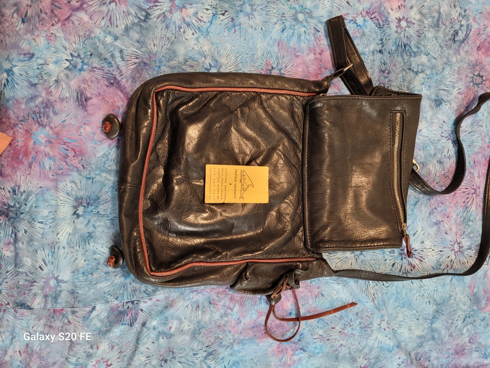 Small Soft leather shoulder bag with adjustable strap. Features a front flap closure and a zippered pocket