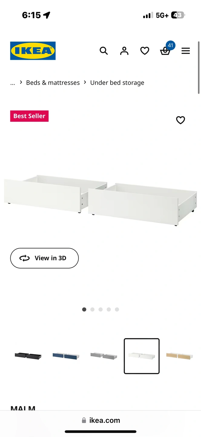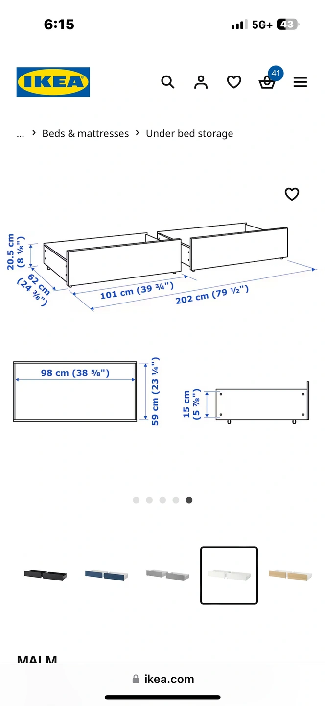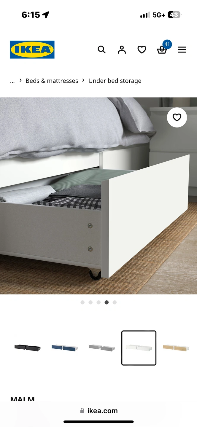 A white underbed storage drawer from IKEA. This is a single drawer and not a set. The drawer has wheels for easy rolling. It measures 79 1/4" wide, 39 3/8" deep and 15 5/8" high. Pick up lakeshore and browns line