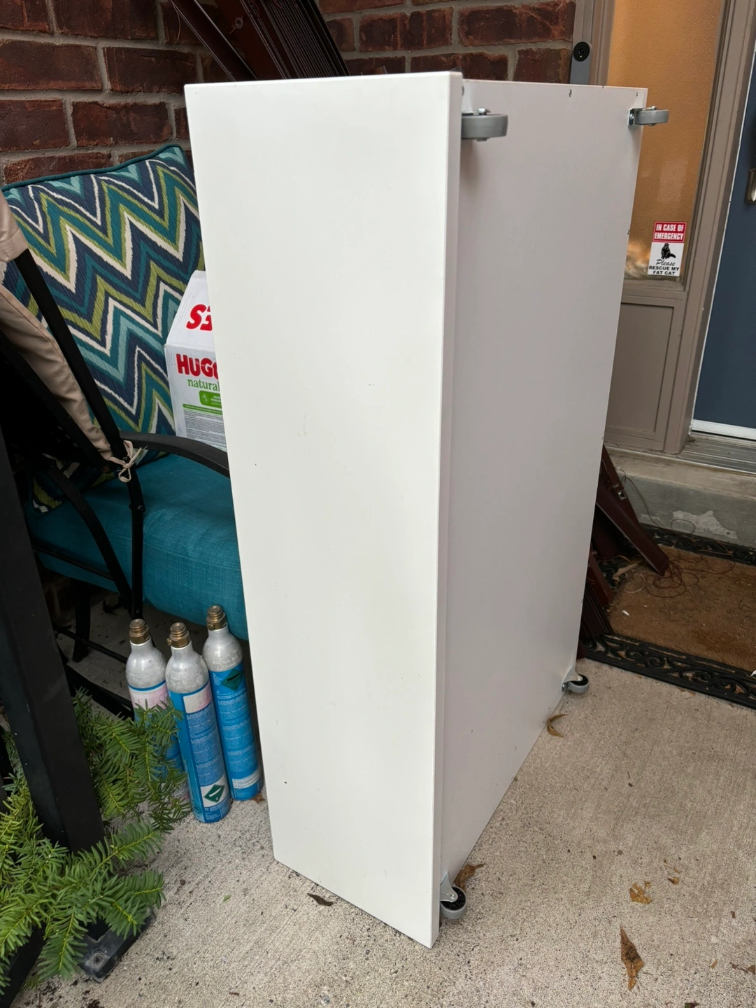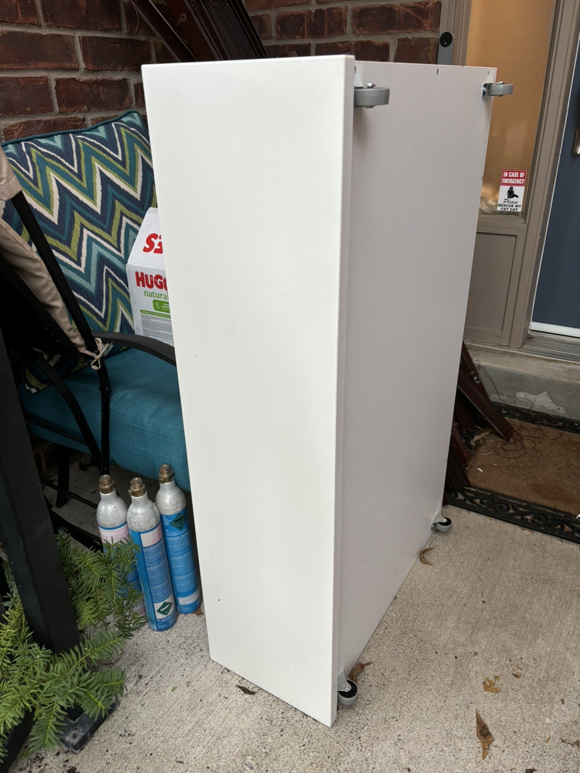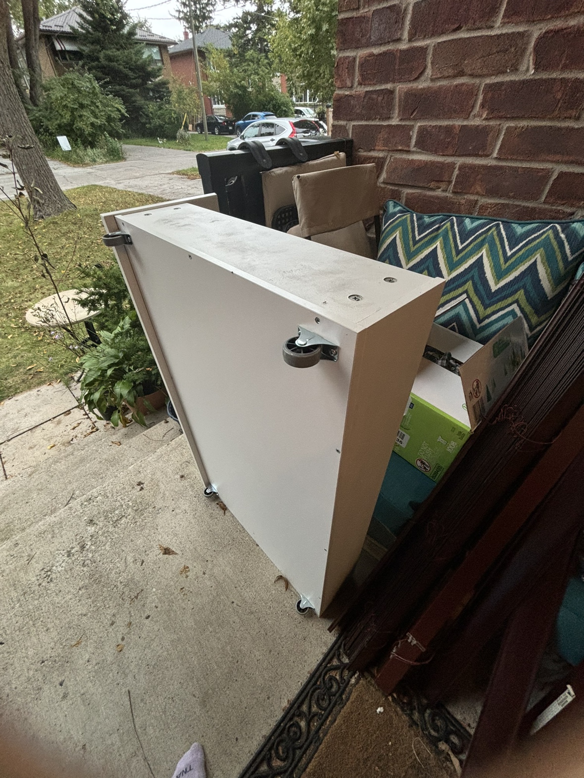 A white underbed storage drawer from IKEA. This is a single drawer and not a set. The drawer has wheels for easy rolling. It measures 79 1/4" wide, 39 3/8" deep and 15 5/8" high. Pick up lakeshore and browns line