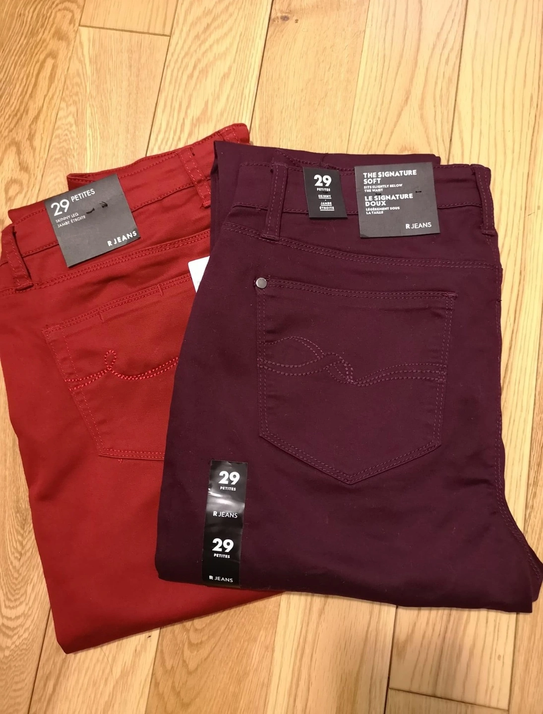 787BNWT Reitmans petite skinny jeans size 29 - $12 each OR take both for $20 Dark red jeans - high rise (9"), 28" inseam Eggplant purple jeans - mid rise (8"), 28" inseam Jewel tone colours jeans. Danforth/Main