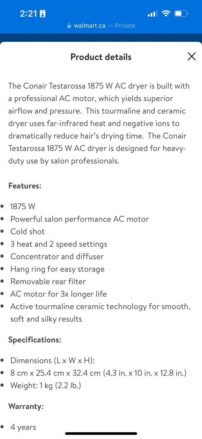 Conair Testarossa Hair Dryer