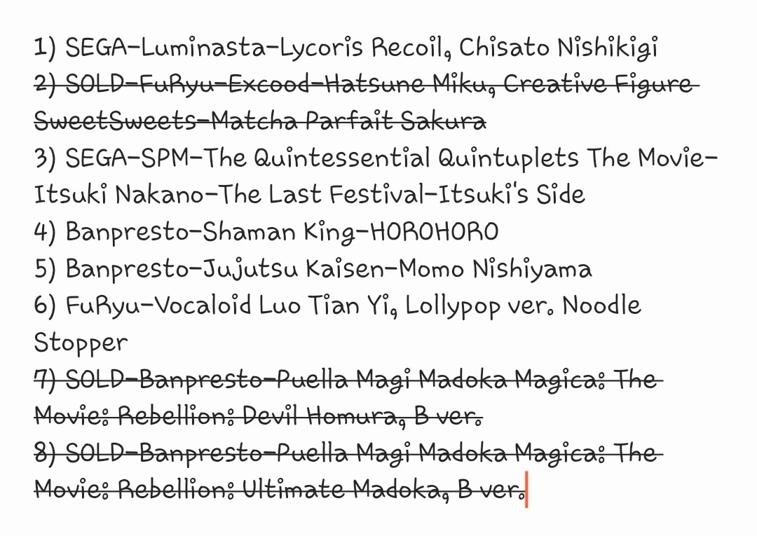 Various Anime Crane Game Figures-updated Mar 9/26