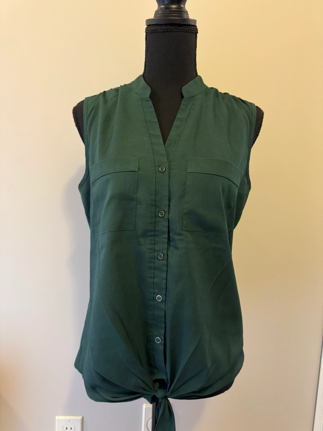 Emerald green sleeveless tie-front blouse with chest pockets - $5