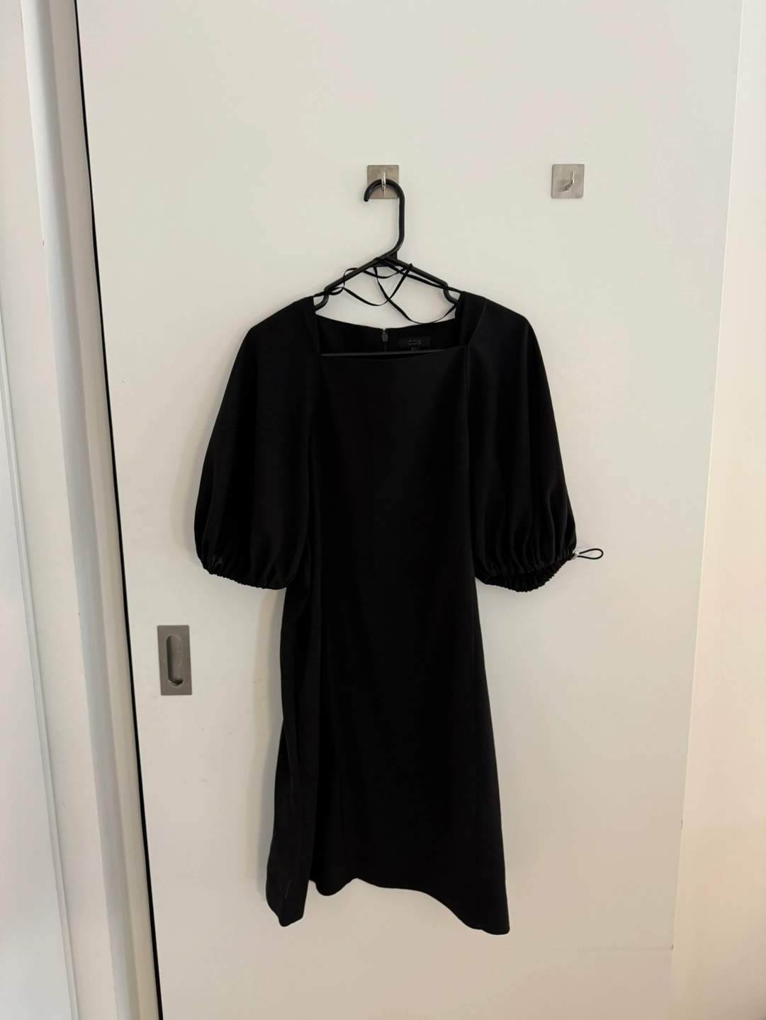 Size Medium, black dress with puff sleeves and a tie. Pockets with dress Originally $190 Selling at $70 Pick up only yonge and dundas Cash only