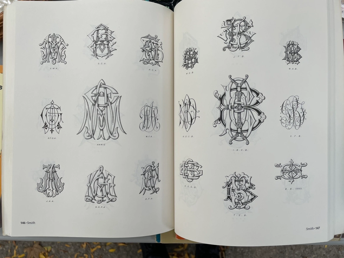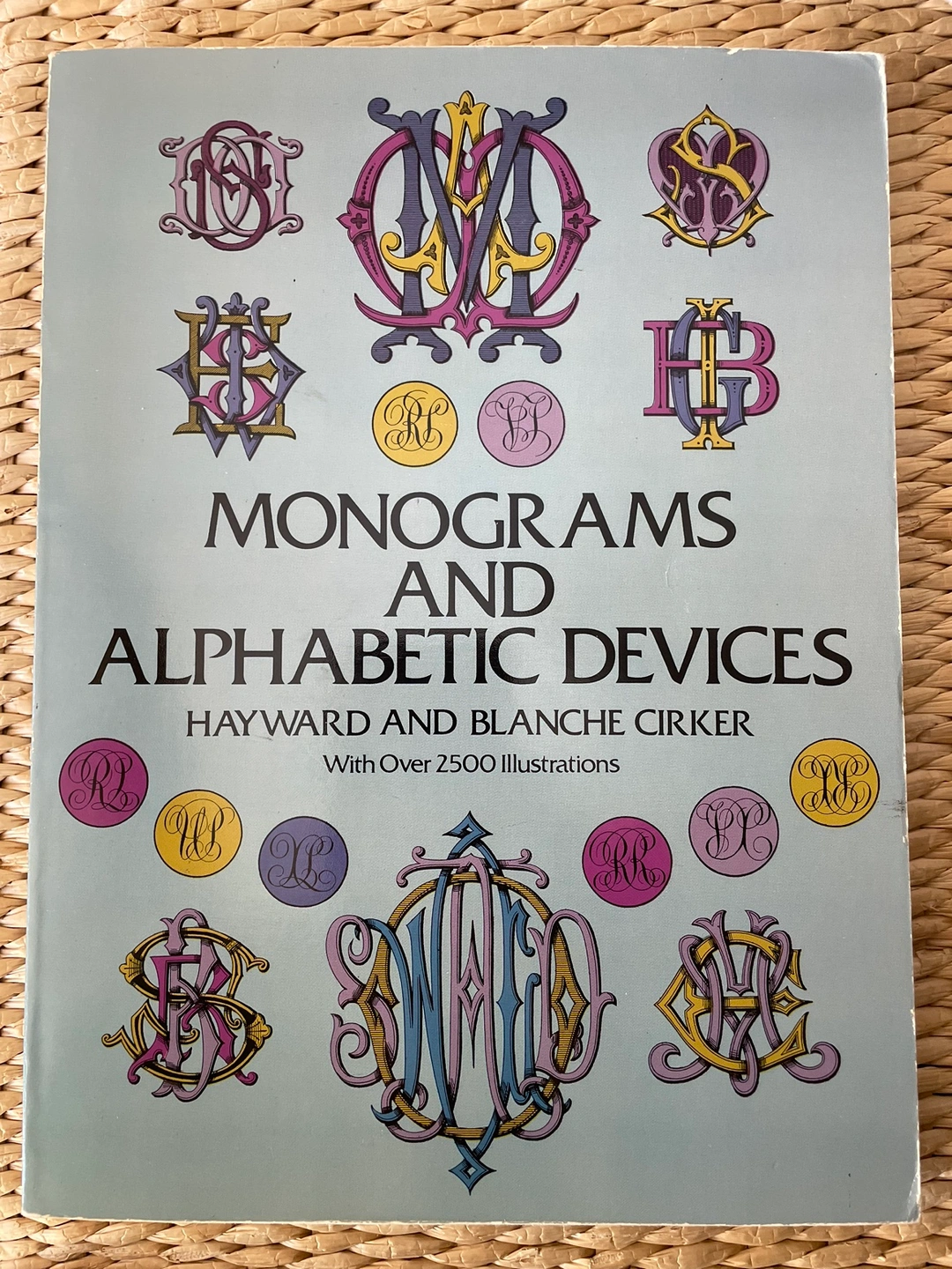 This book is filled with over 2,500 illustrations of monograms and alphabetic devices. The book was published in 1972 by Dover Publications. Monograms and Alphabetic Devices By Hayward and Blanche Cirker This book contains the entire contents of four fine volumes of monogram and allied devices published between 1830 and 1881. Over 2,500 monogrammatic and alphabetic designs are displayed in plates from "Dictionnaire du Chiffre-monogramme," etc., by Charles Demengeot (1881); "Monograms and Ciphers," by H. Renoir (1870-74); "Knight's New Book of Seven Hundred & Fifty Eight Plain, Ornamented & Reversed Cyphers" (1830); and "Monograms in Three and Four Letters," by J. Gordon Smith (n.d.). There are monograms in every two-letter combination and extensive selections of three and four letters; name devices ("Alice," "Theodore," etc.), crowns, crests, coats of arms and helmets. There are heavy, intricately entwined monograms that appear as though engraved on metal; lighter, thick-and-thin script styles; fanciful and formal designs; monograms in circles, ovals, square shapes, and free outline; and an immense variety of letter styles, including many designed for the particular device. A notable feature of this volume is the Index of Monograms and Ciphers, listing alphabetically every letter combination shown and the page or pages on which each appears ("S W", for example, is drawn in three different styles; "A L" in five; but "F N H W" in only one); and an Index of Names and Devices. Both features add greatly to the usefulness of the book. Importantly, every device shown may be reproduced by the purchaser free of charge. Artists, designers, engravers, and craftspeople will find this book a prolific source of inspiration and unusual styles; typographers, calligraphers, draftspeople, and students will use it as an aid in creating their own letter designs; while those in the printing, publishing, advertising, and allied fields will call upon it whenever a distinctive monogram or decoration is needed.