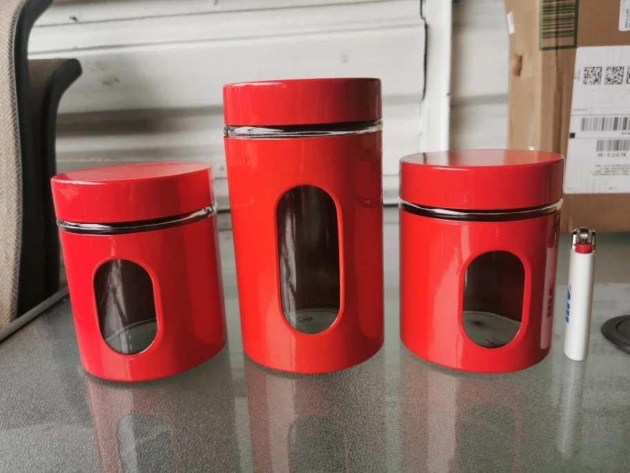 Red Canisters stainless steel x3