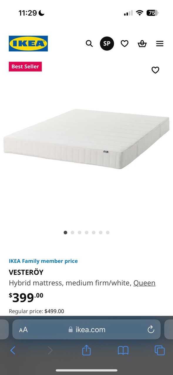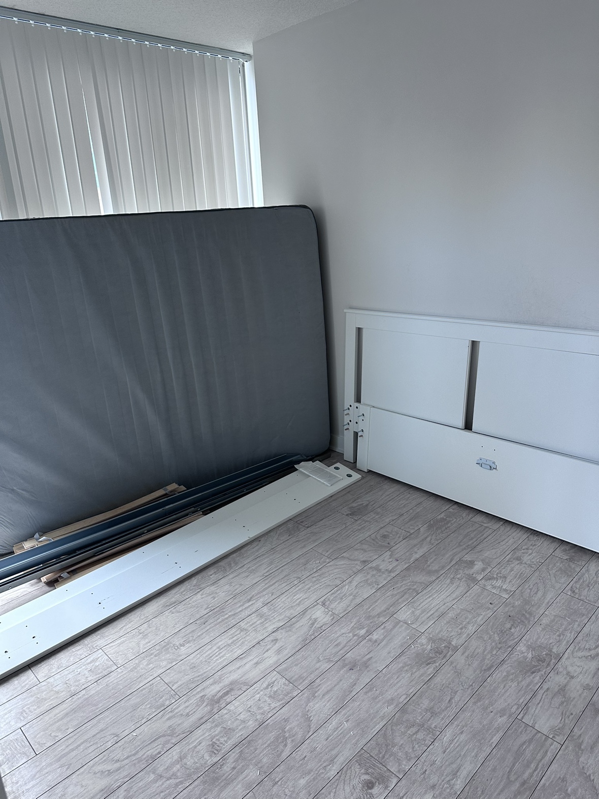 The IKEA Queen Size Bed Frame and Mattress come in white and medium firmness.