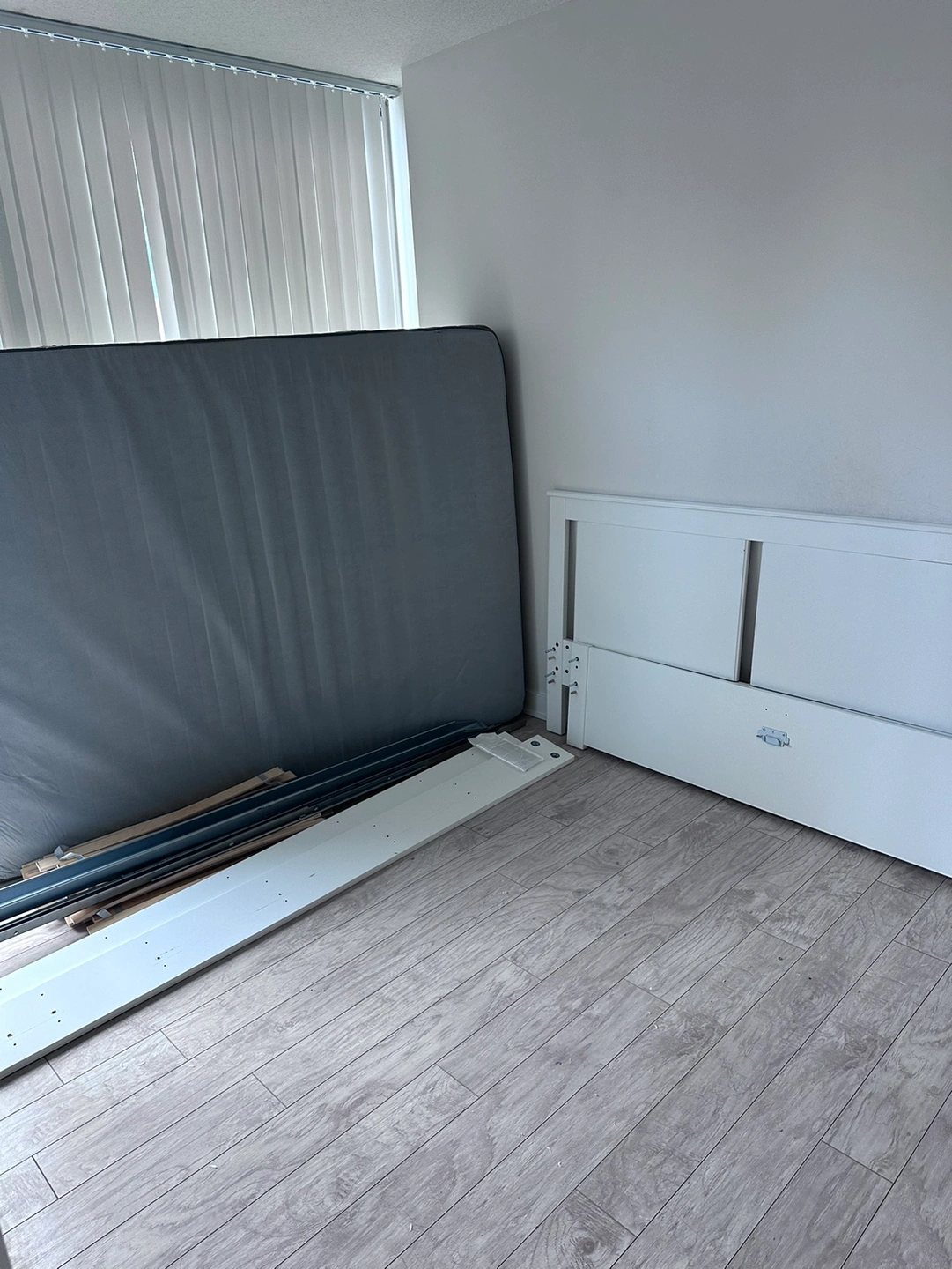 The IKEA Queen Size Bed Frame and Mattress come in white and medium firmness. Until 2 pm. Otherwise, I will throw it out!