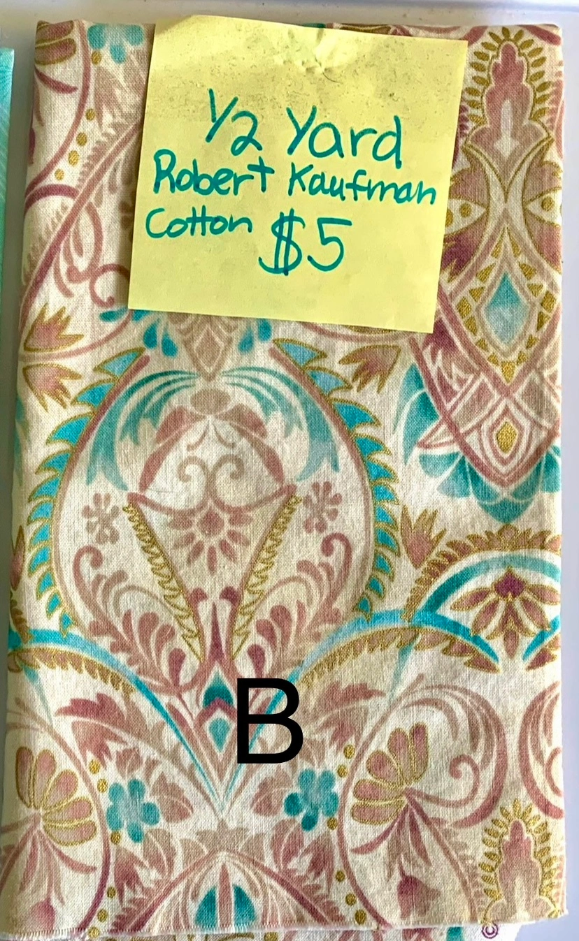Gold/teal cotton fabric from Robert Kaufman. Measures 1/2 yard.