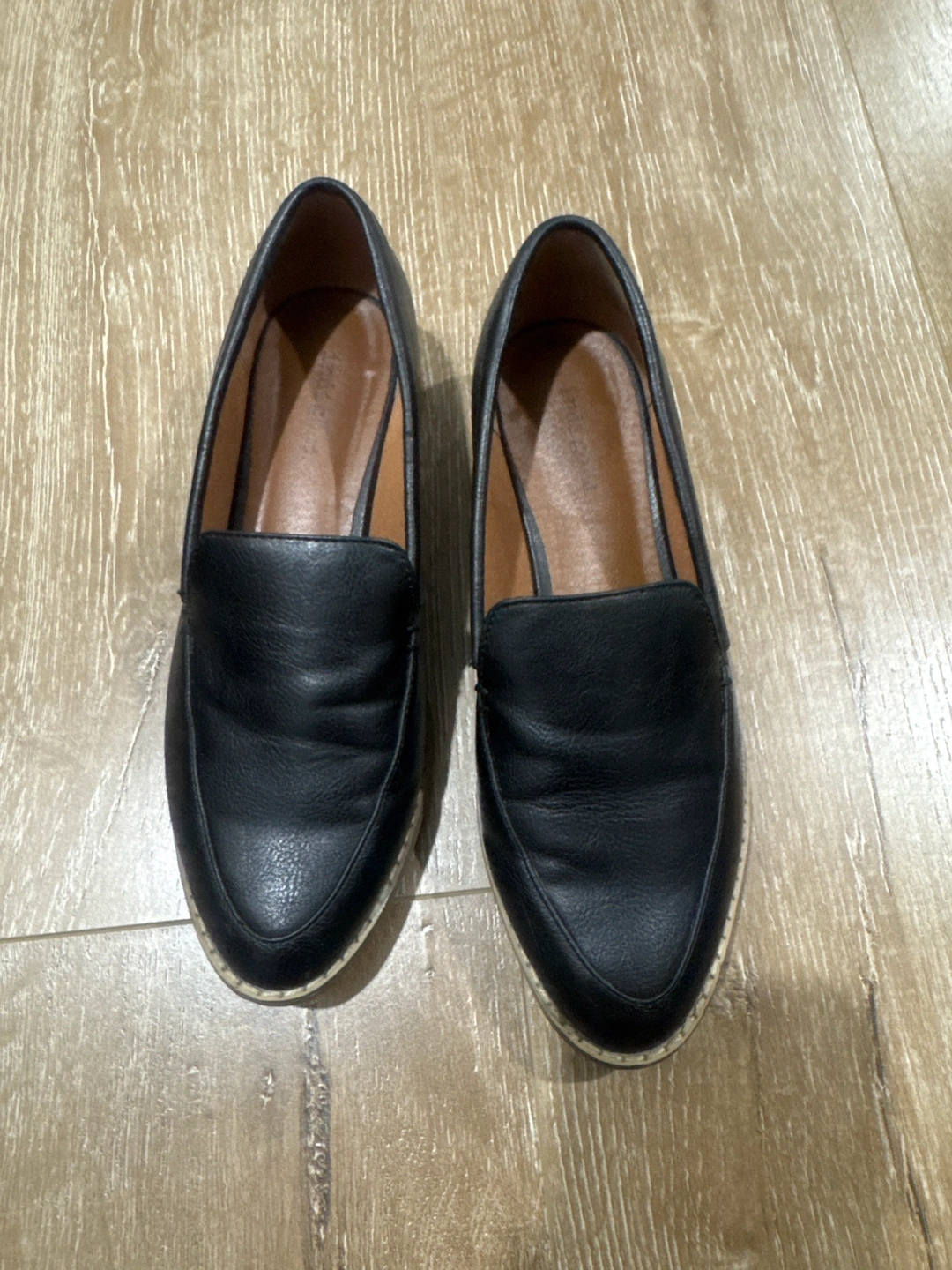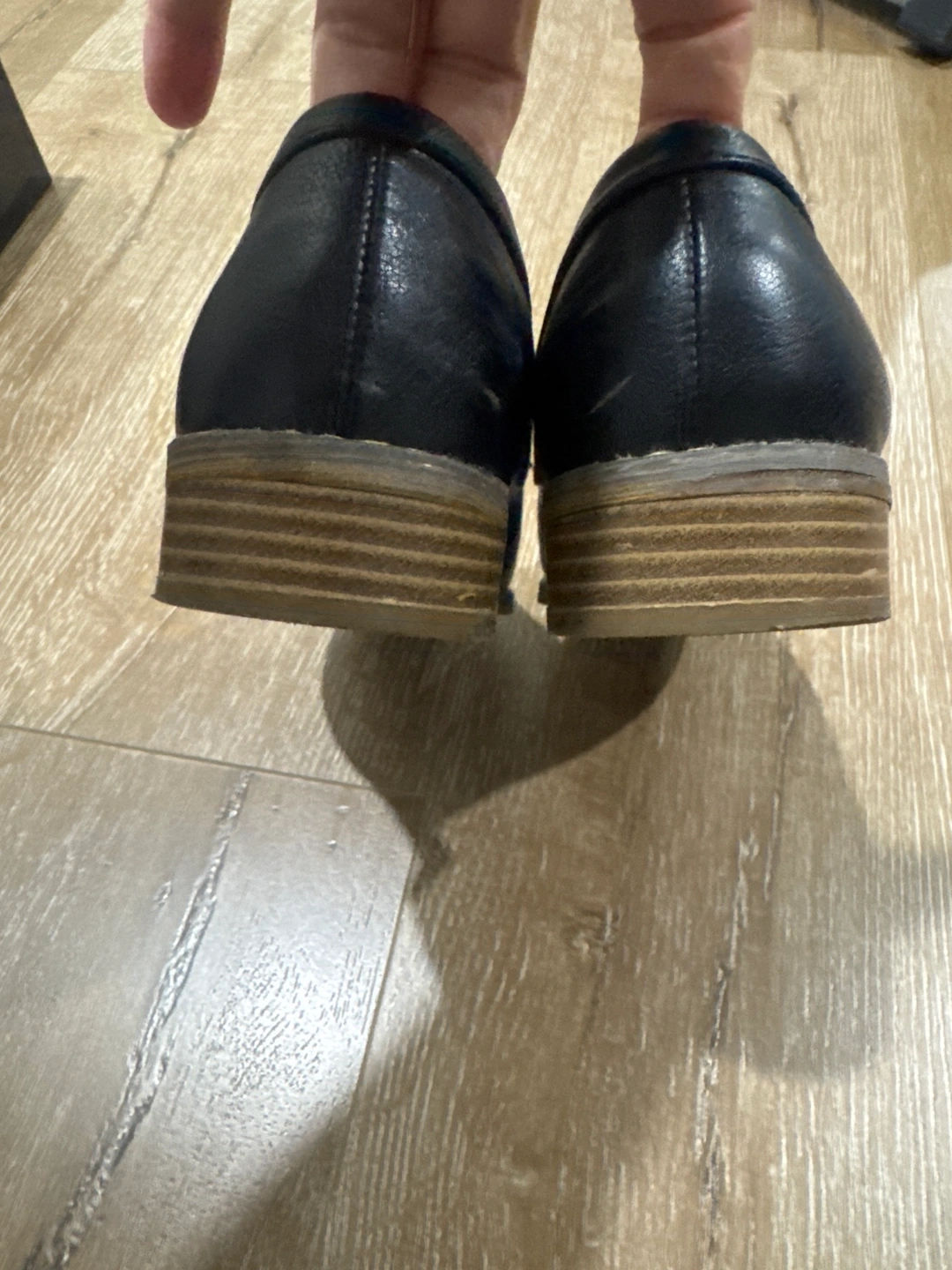 These are a stylish pair of black leather loafers that are perfect for any occasion.