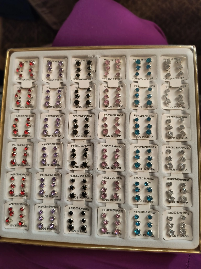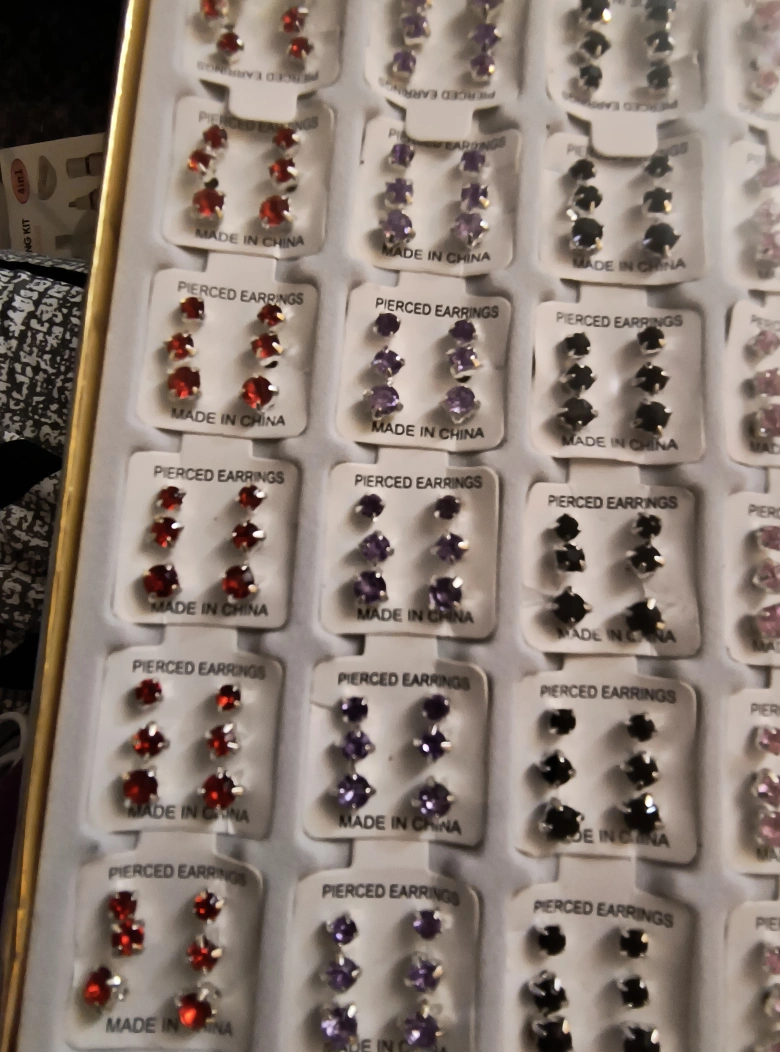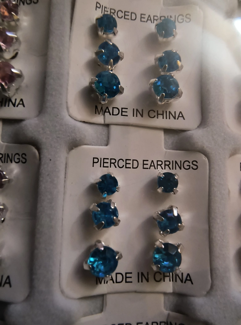 541A variety of earring sets, all brand new and in their original packaging. 1 set of 3 for $3. mix and match, 6 sets for $16. 12 for $32.