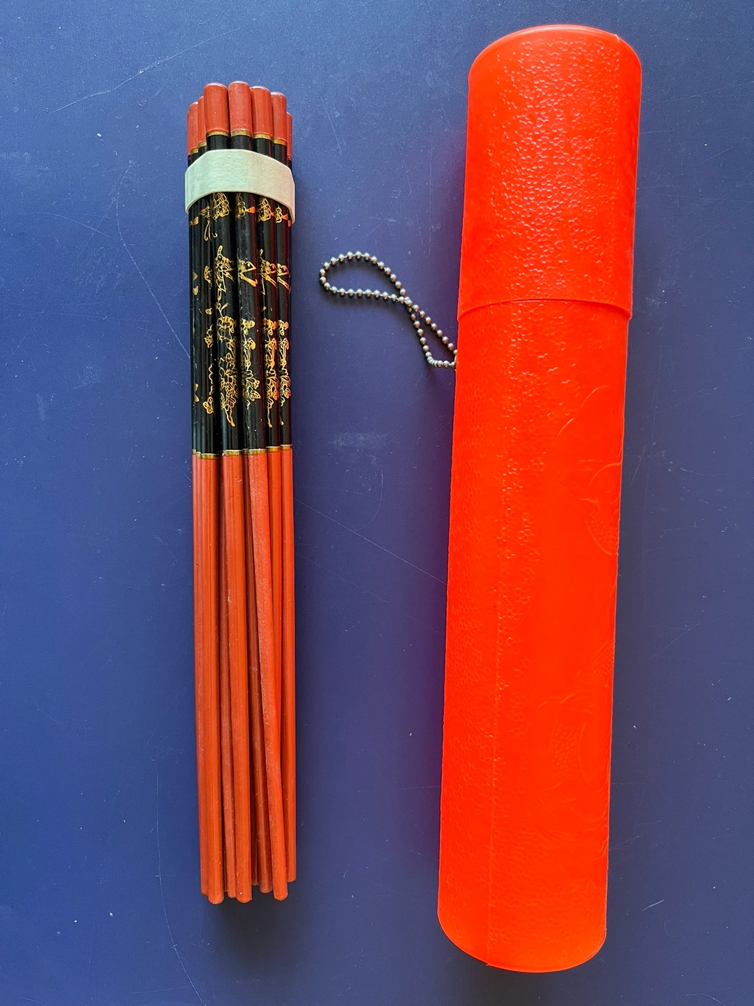 10 pairs of new chopsticks with black and gold designs. Includes a new red storage case. All are brand new and never used. If ad is up, the items are available.