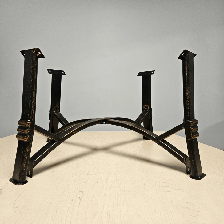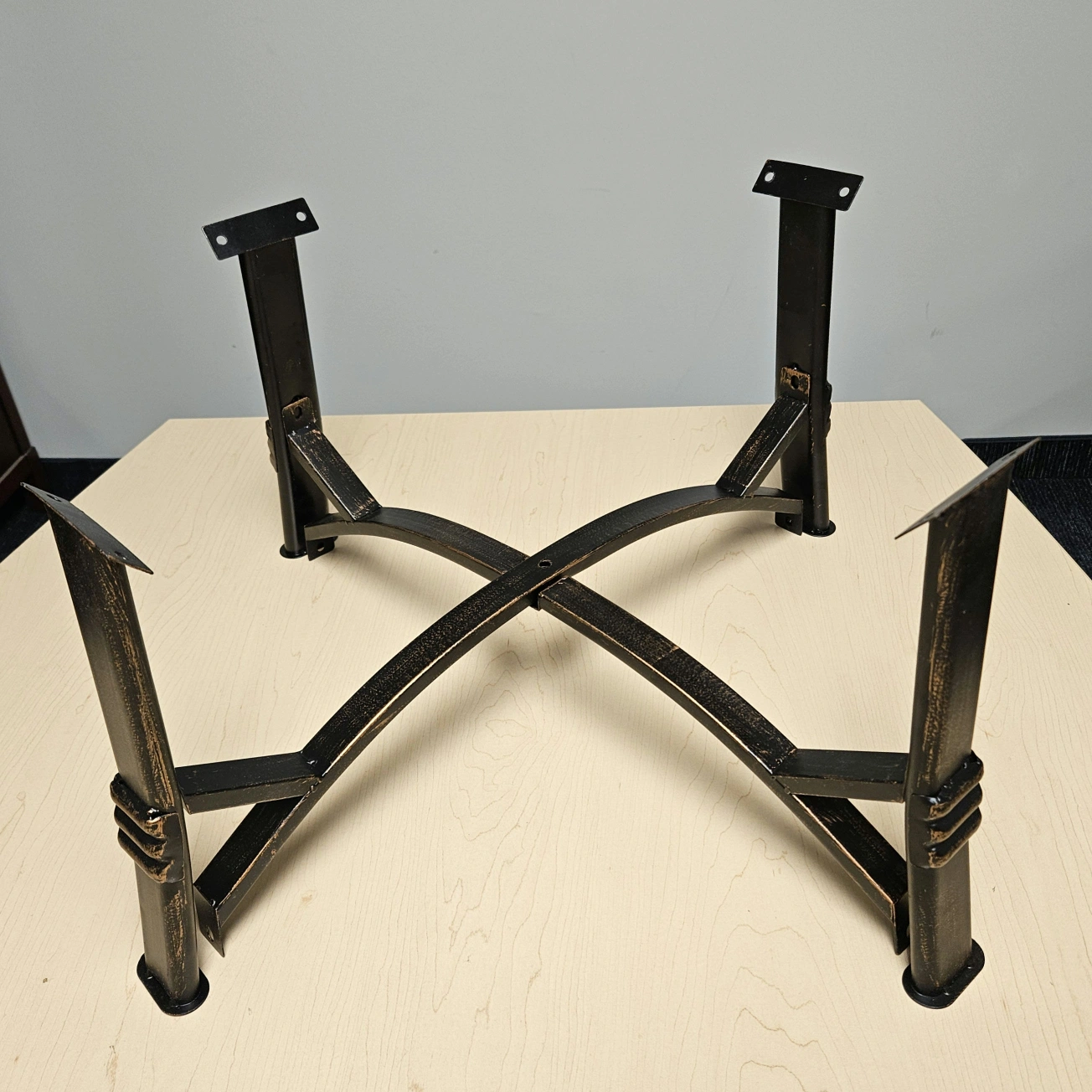 This might be a bronze metal table base? We think it goes together as pictured, light weight metal, no hardware.