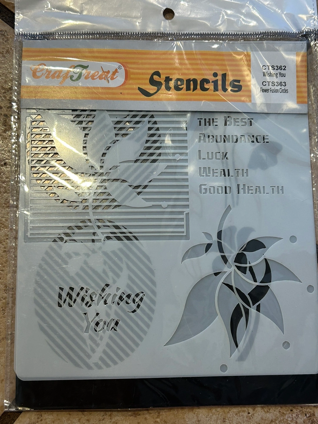 Brand new, found while unpacking but don't need them. Set of stencils that seem to be themed for well wishes and florals. Exact stencils included in the final picture.