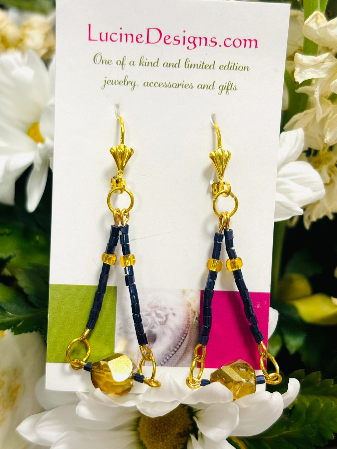 Gold and Blue Beaded Earrings, boutique jewelry, gift ideas