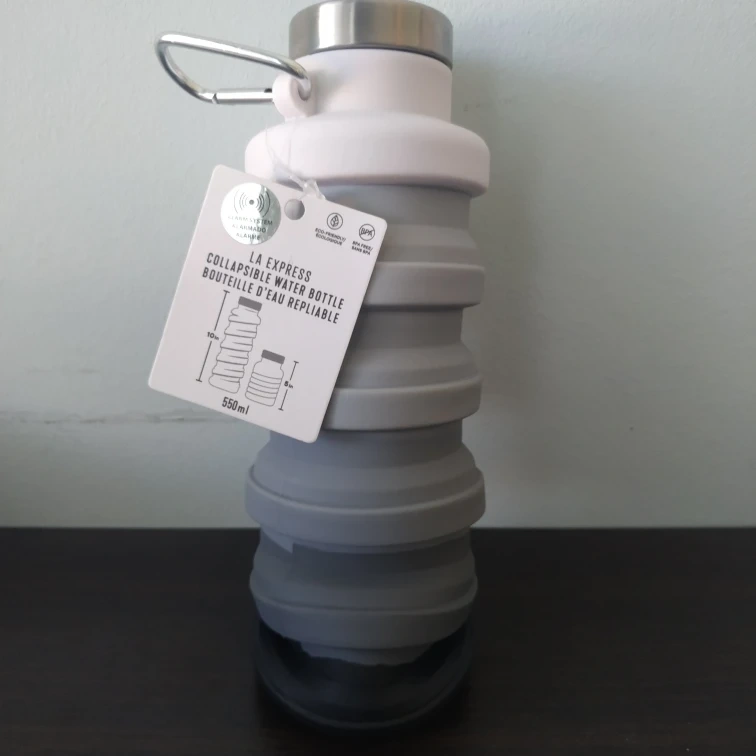 1000+550 ml collapsible water bottle with a stainless steel lid and a carrying hook. brand new with tag