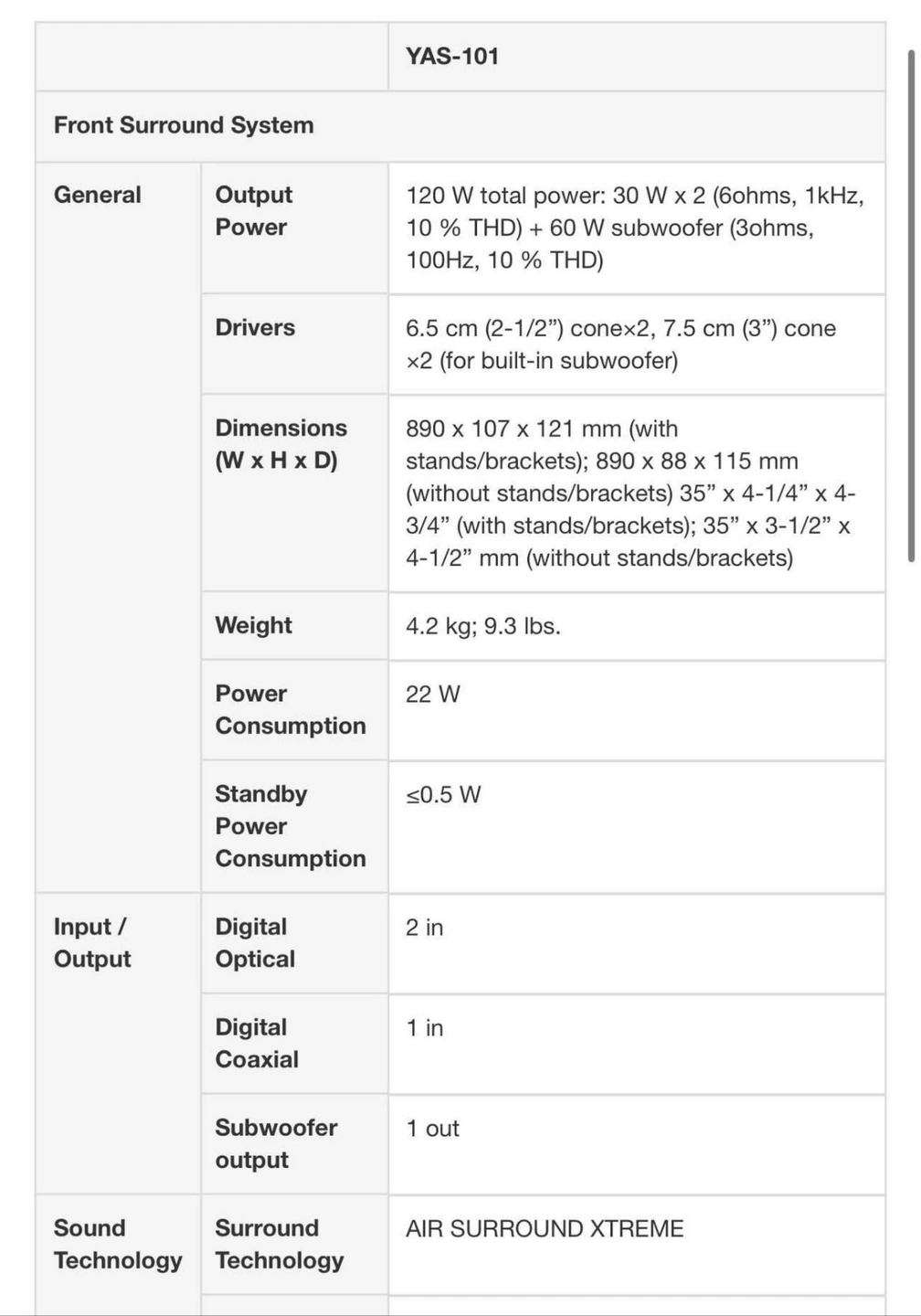 Yamaha YAS-101 Sound Bar