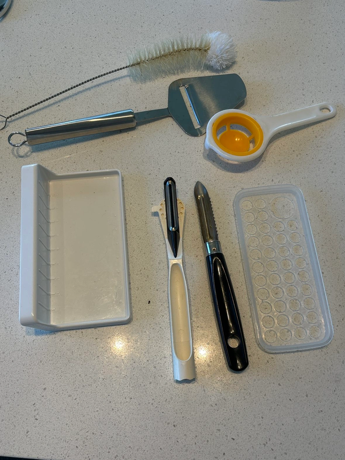687Pick up at Dundas and River *Must take all* - bottle brush - cheese plane slicer - couple peelers - egg yolk separator - two trays. Can be used like soap or sponge dishes