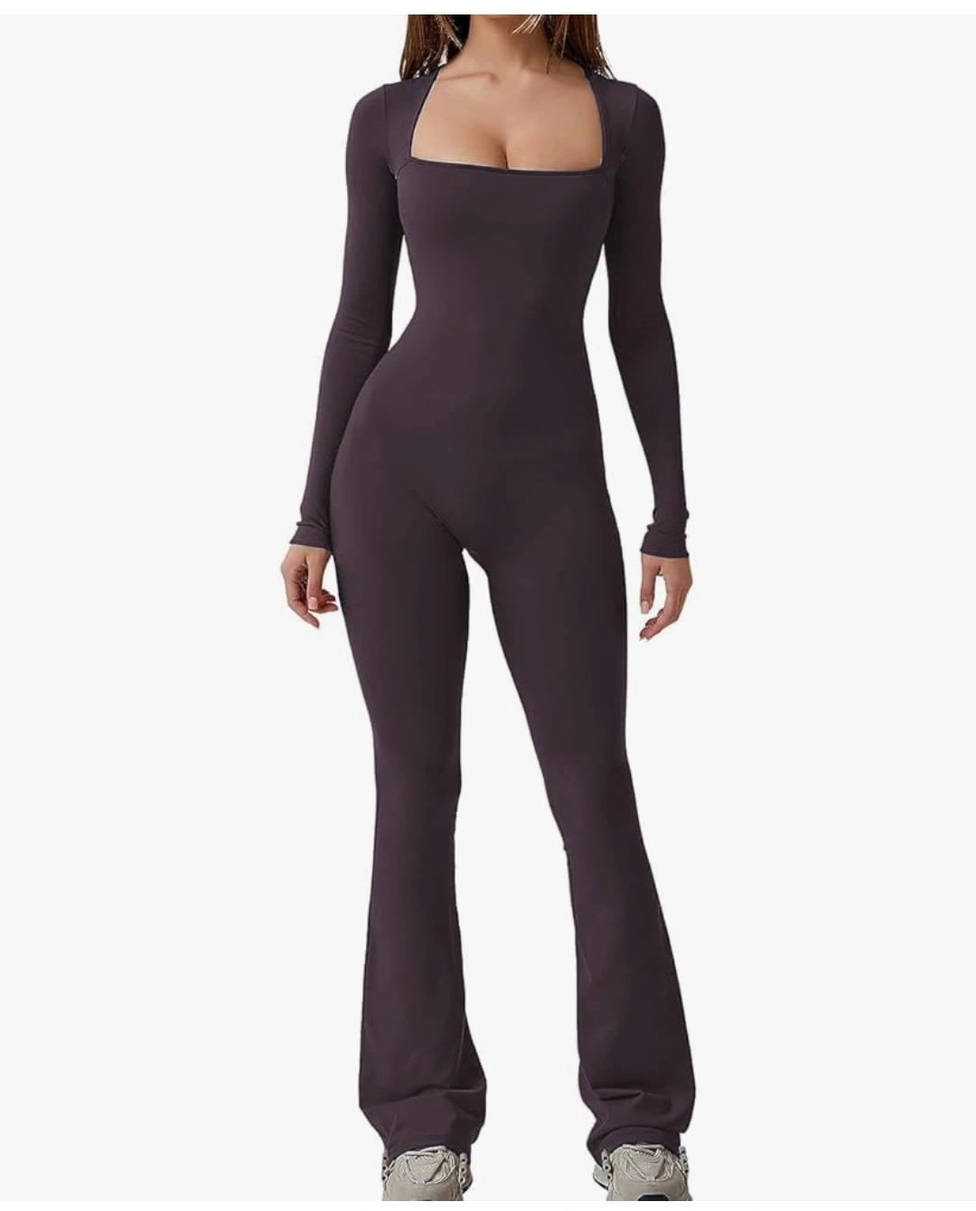 Long sleeve, square neck jumpsuit.