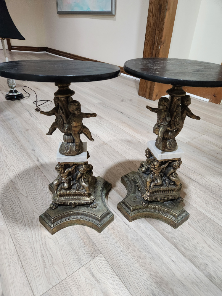 1 / 31 / 3Buy & SellPair of Cherub End Tables x 2Pair of Cherub End Tables x 2$20A pair of end tables with black wooden tops and cherub details.Dimensions 12inch diameter x 19.5inch heightWHERE TO MEETCheck LocationView MapSELLERjessDoncrest54284 reviews5 chats·8 favorites·270 viewsSEND CHAT TO SELLERHi jess! I’m interested in your listing.Hi jess! I’m interested in your listing.Get the Karrot app to chatSign In to chat