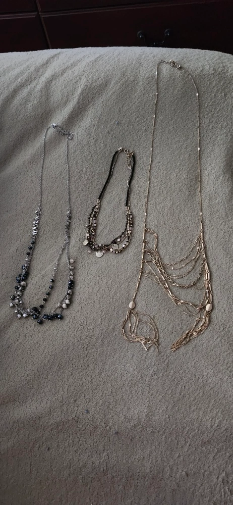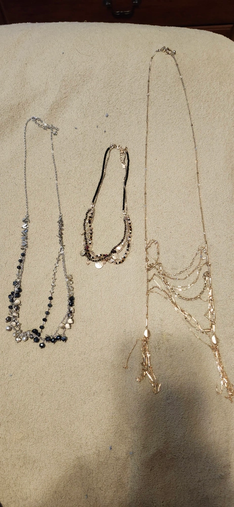 Set of three necklaces in silver, black, and gold tones. Excellent condition, middle necklace is branded as Loft.