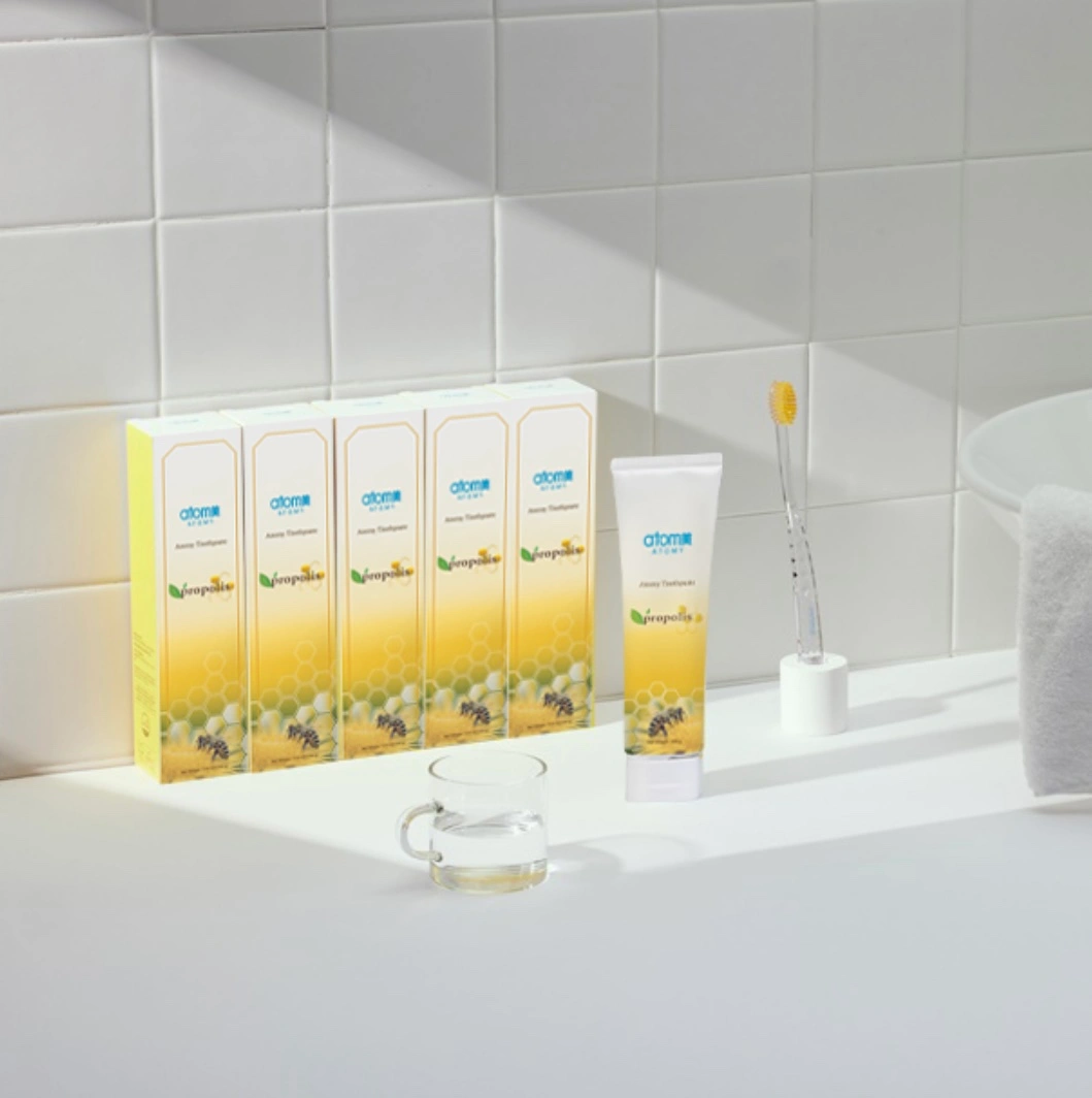 43Atomy Toothpaste with Green Tea and Propolis extracts. 5 tubes in the package. All natural Taste your food when you finish brushing your teeth.