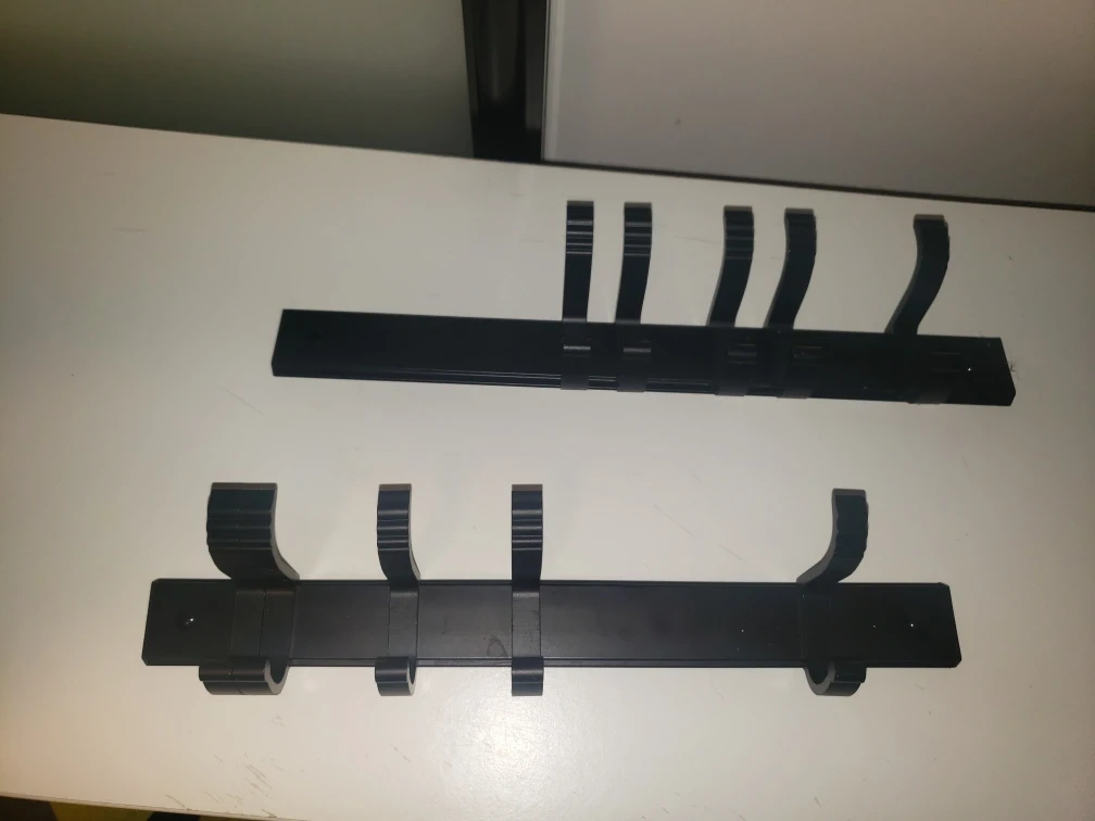 Slide-adjustable black hooks, 5 hooks per bracket (10 total).