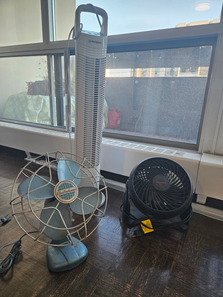 All three (3) fans at $30. Includes a Westinghouse, a Honeywell, and an Electrohome fan. Move out sale. Great condition. PET FREE SMOKE FREE! PRICES REFLECT CONDITION AND TIME OF USE. PICK UP ONLY NEED GONE ASAP! Check out my other listing. Maybe you'll find what you need at a very convenient price!