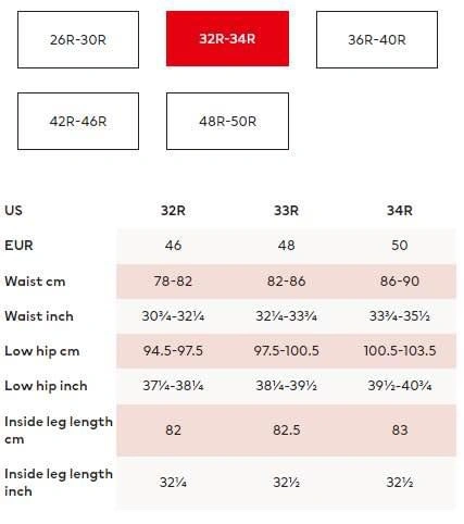 - Outer leg: Length: 102.2 cm (Size 36R)