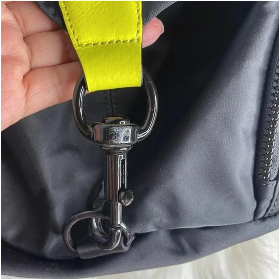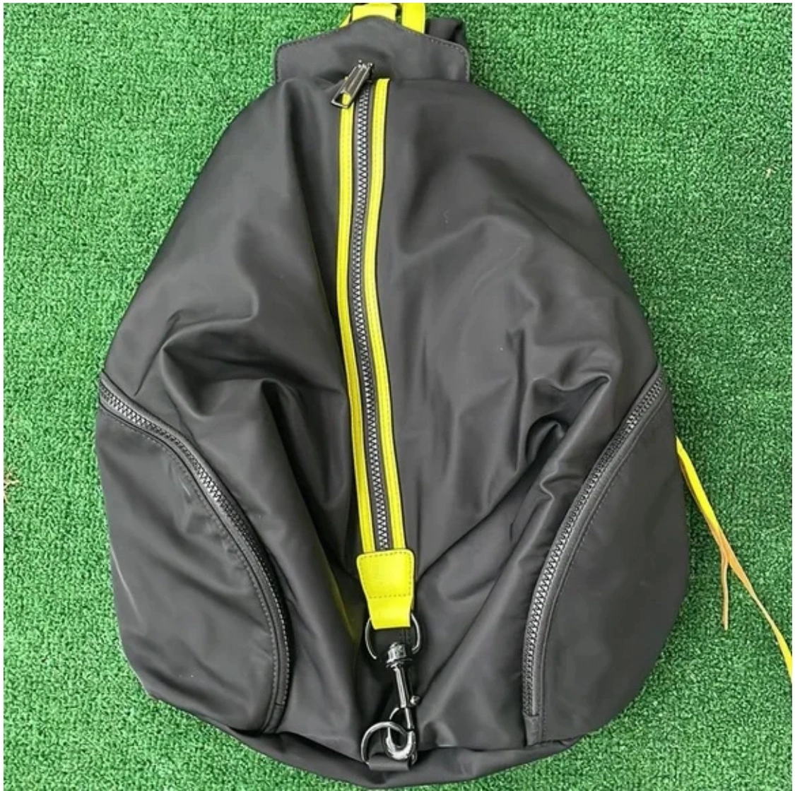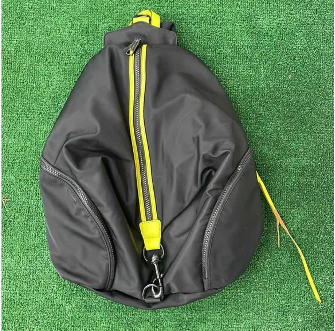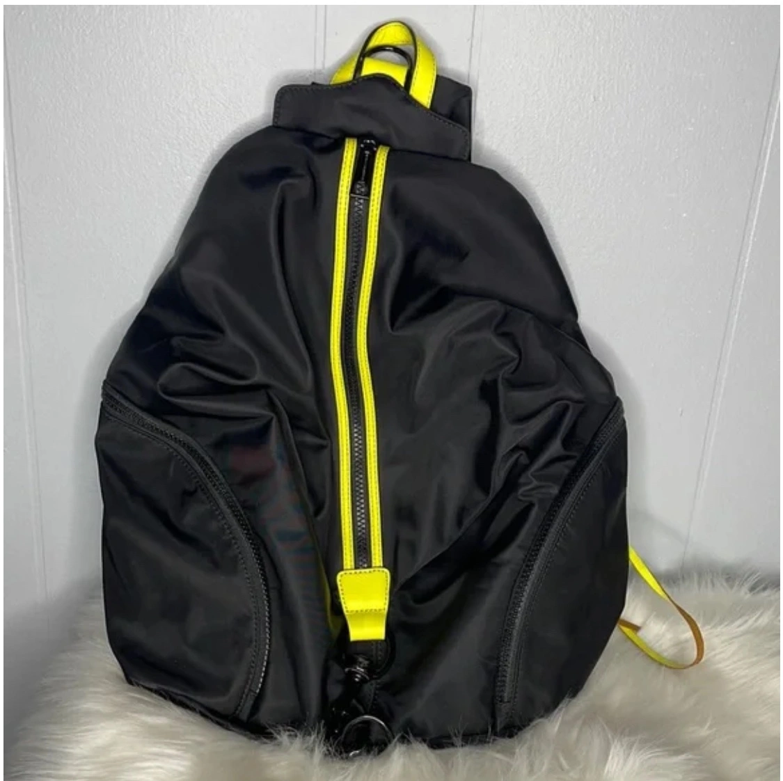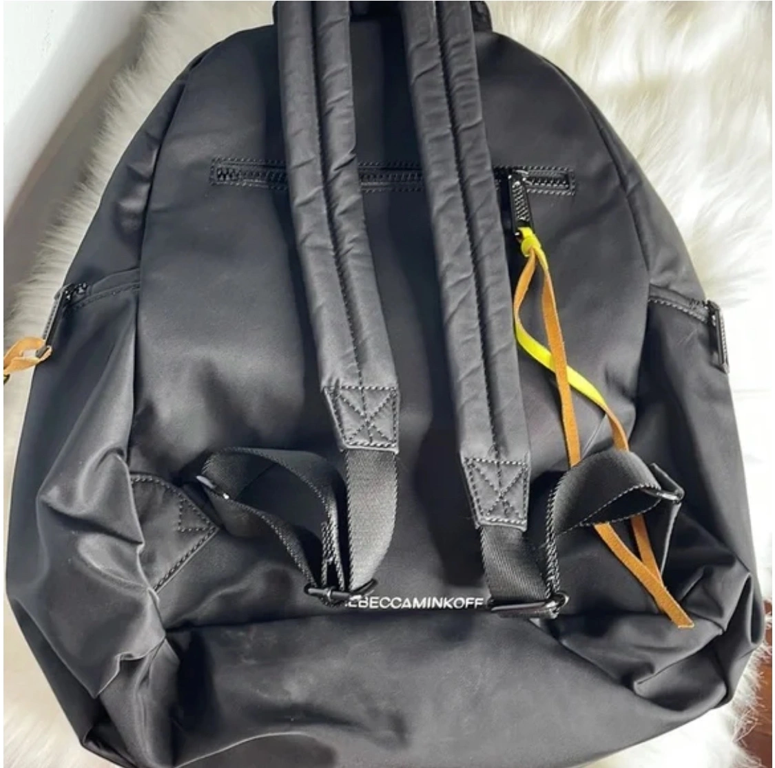 Rebecca Minkoff black & neon yellow Julian style backpack .