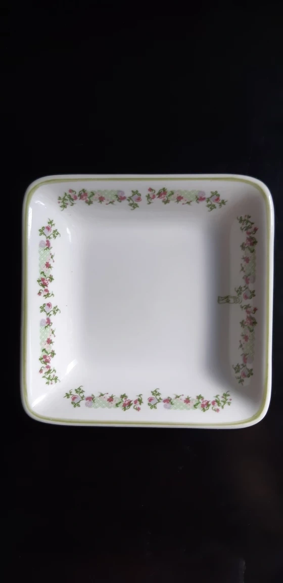 828Small square plate with floral border Made of bone china by Wedgwood of England