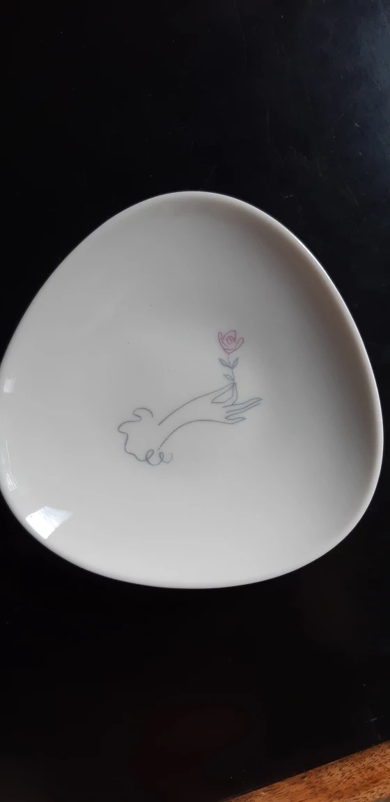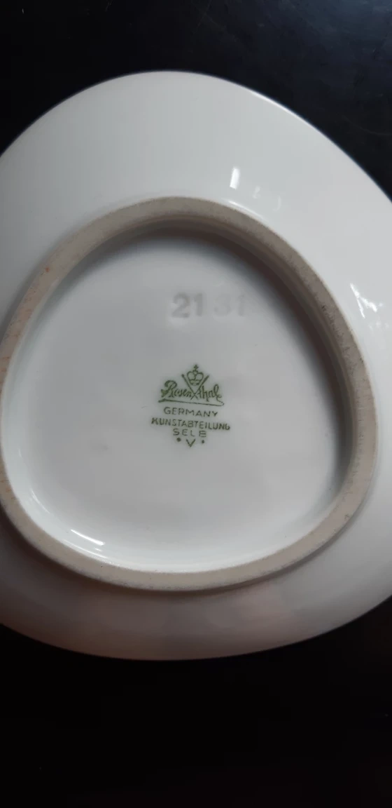828Small white plate by Rosenthal of Germany Delicate hand and rose design Rounded triangle shape