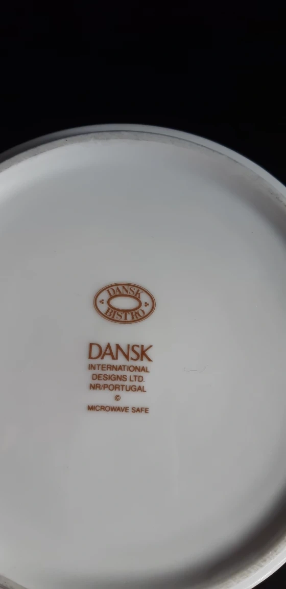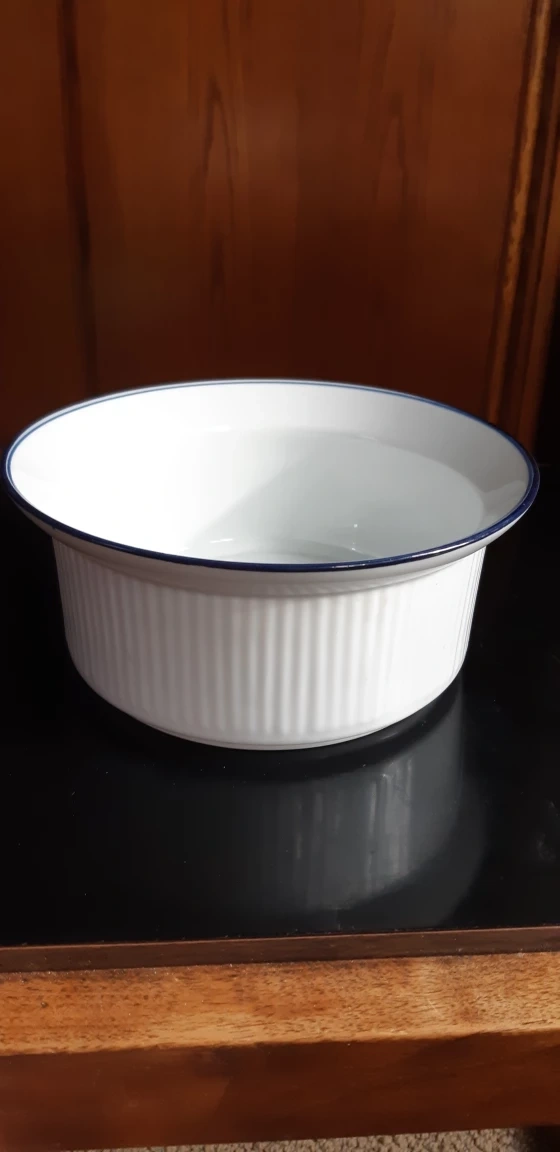 828White baking dish with blue rim Microwave safe 'Bistro' pattern by Dansk International Designs of Sweden