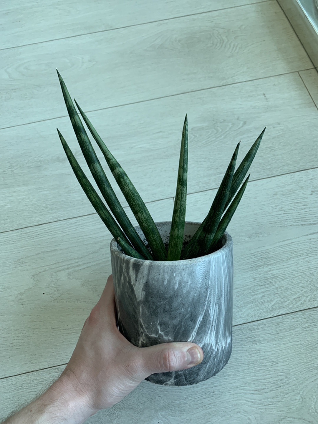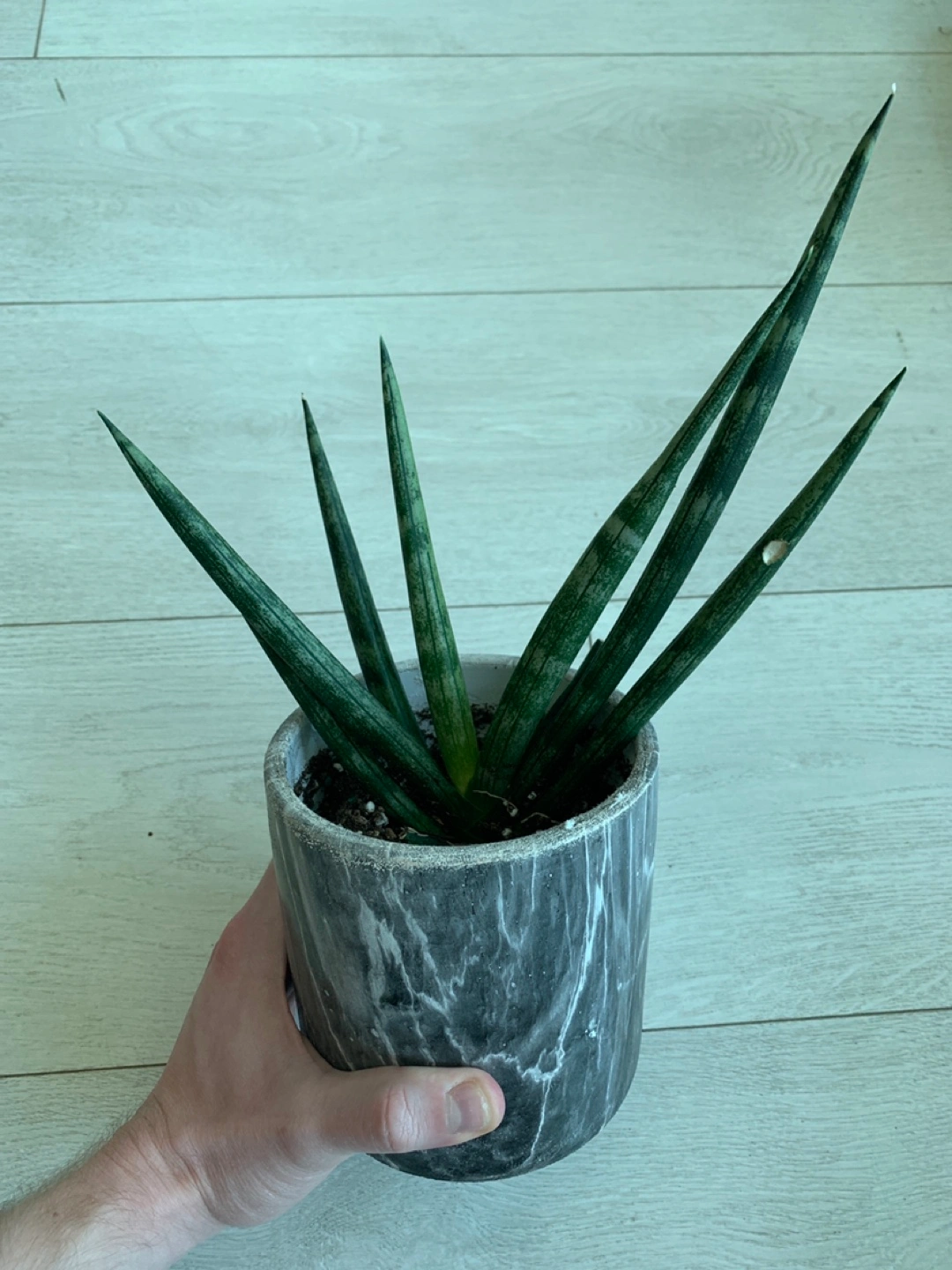 Starfish Sansevieria plant in marble pot. This one is a little taller than the others that I posted already. Starfish snake plants are super rare but also incredibly easy to take care of just like normal snake plants!