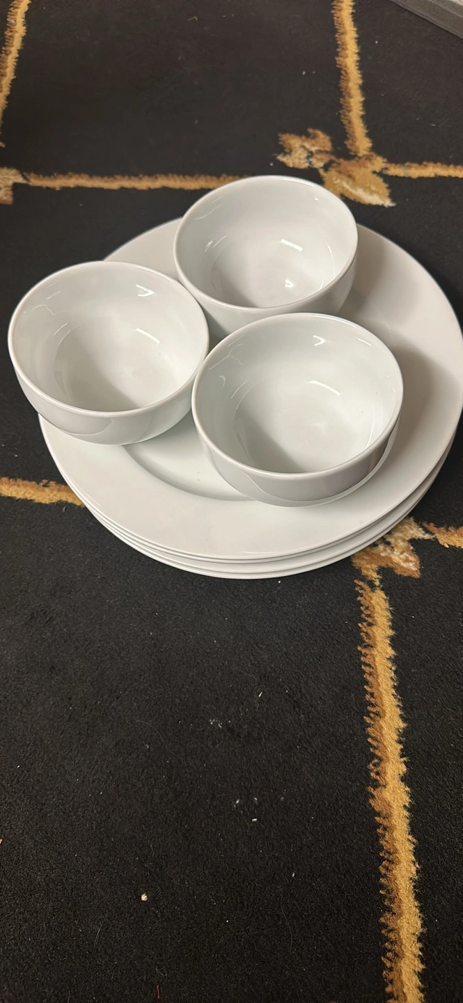 White Dinnerware Set, IKEA,4 plates, 3 bowls