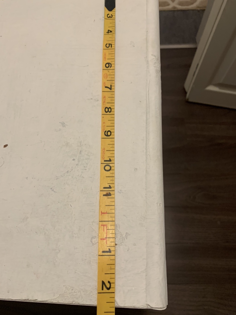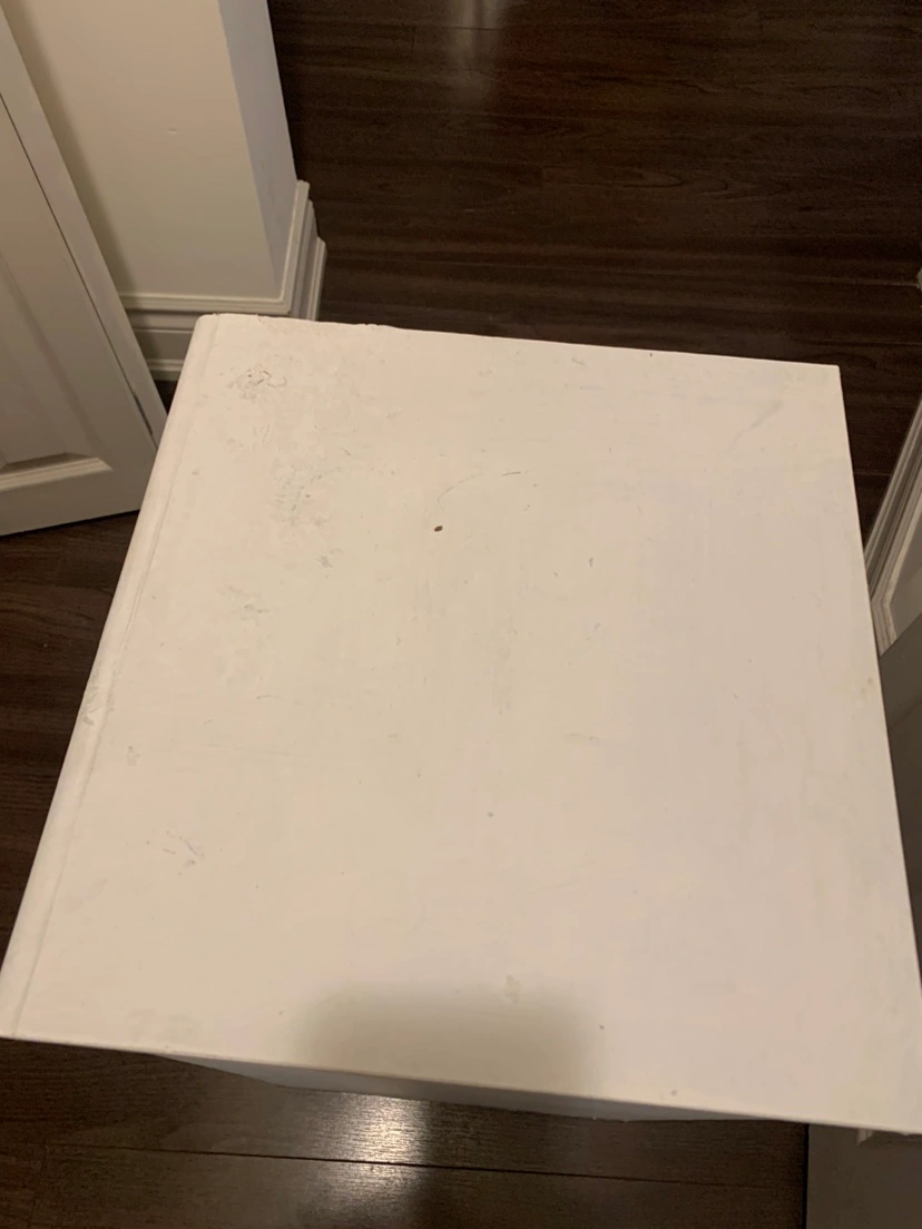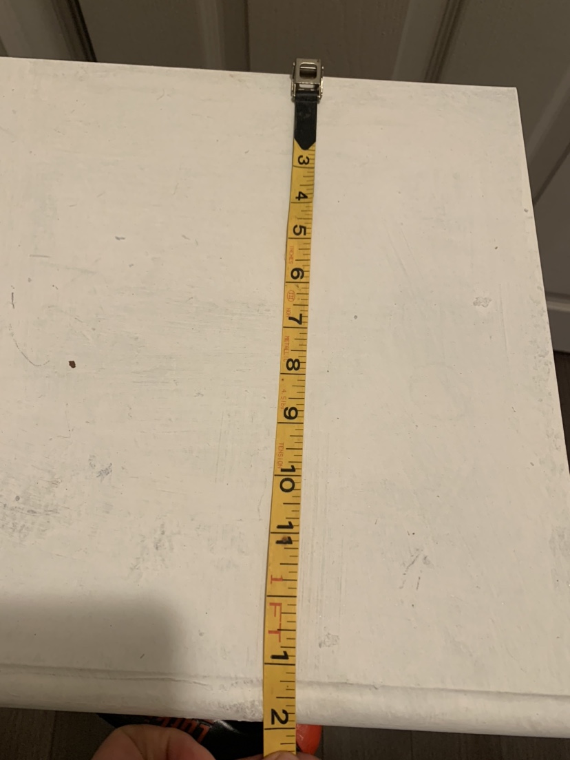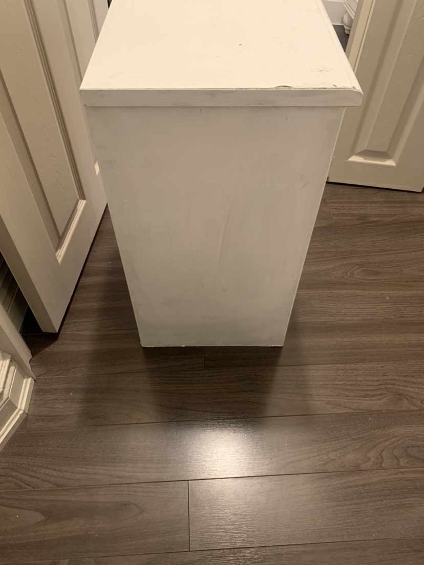 Small white nightstand with one shelf and one cabinet. Approximately 12 inches wide.