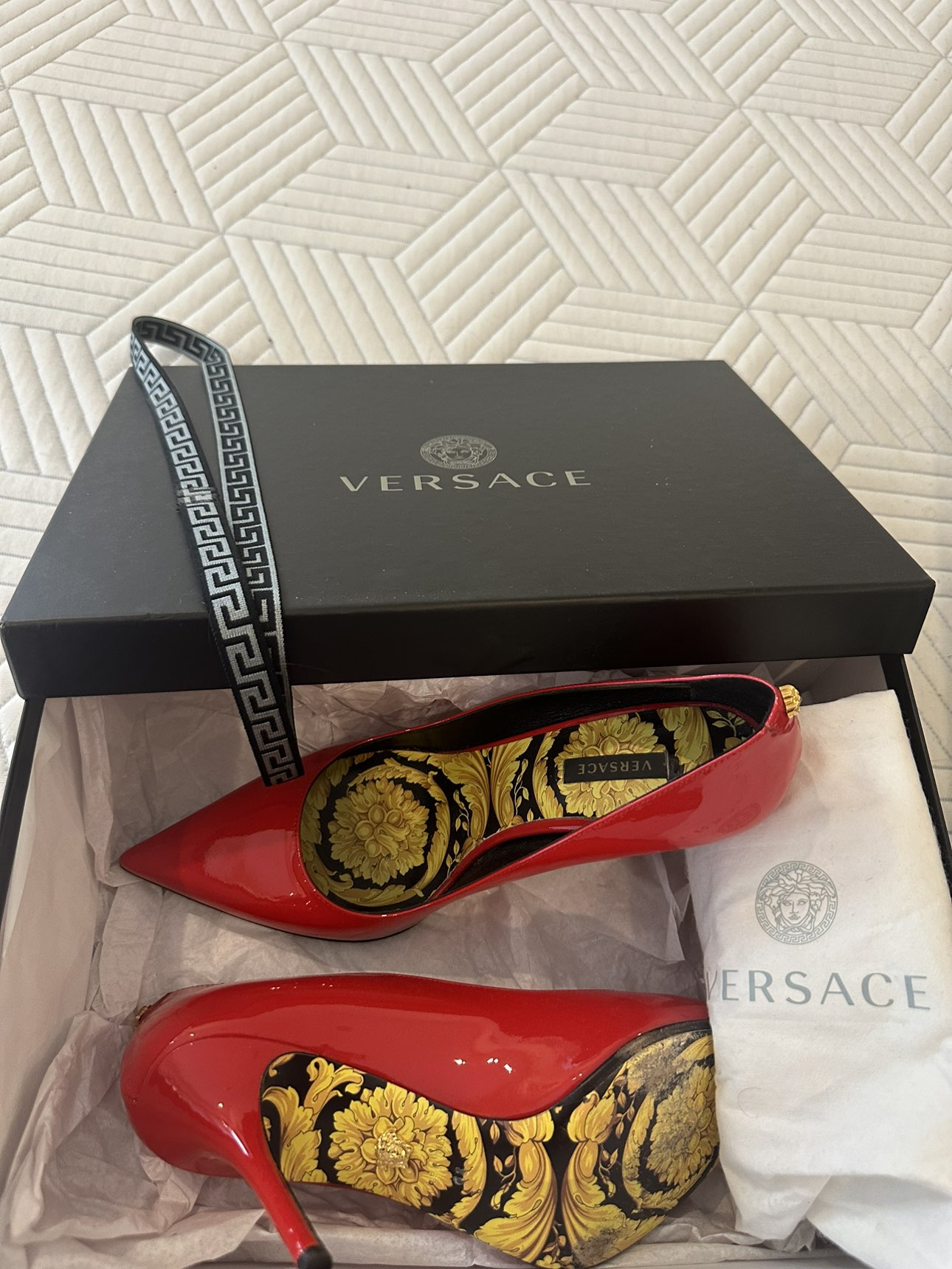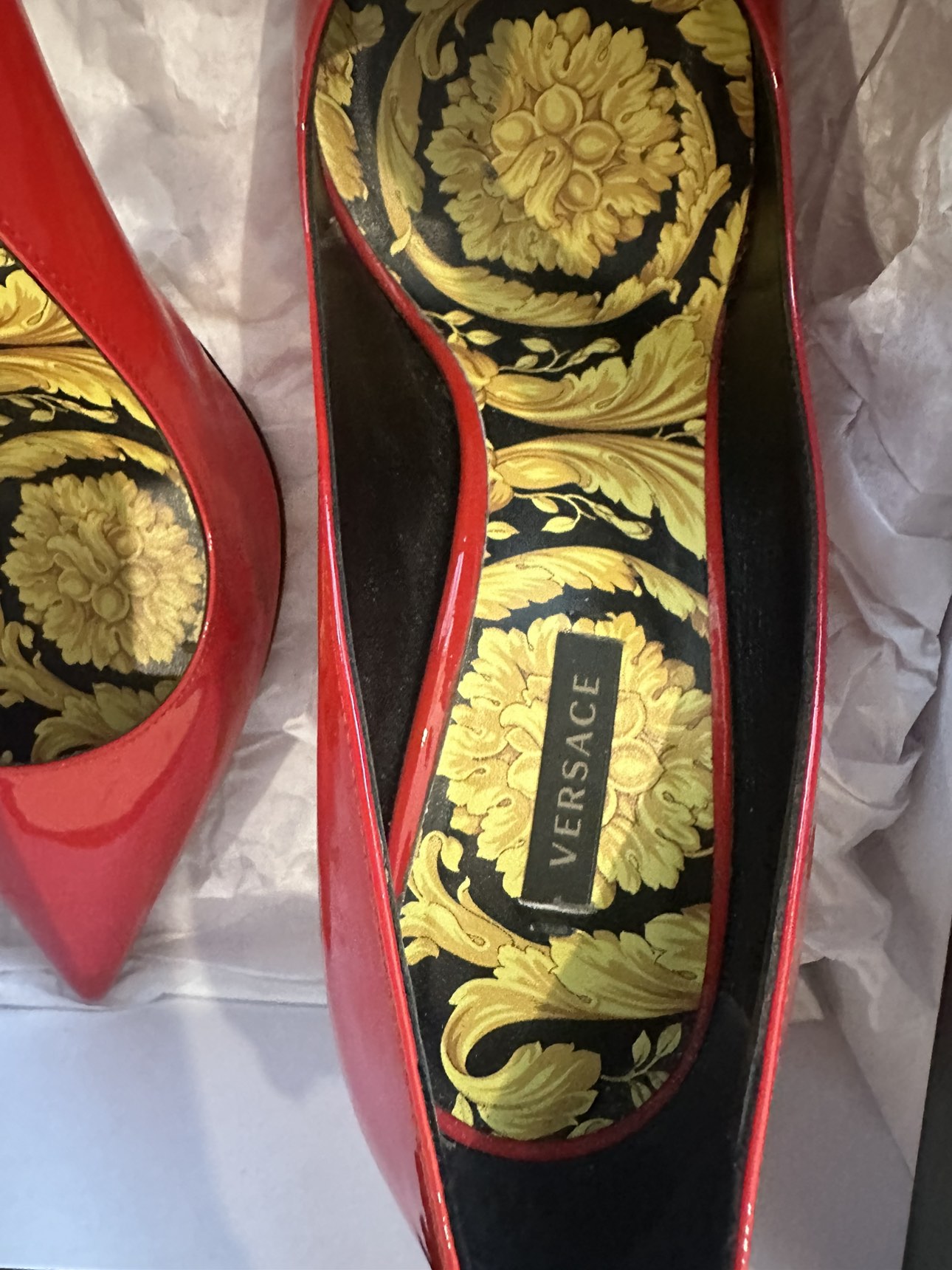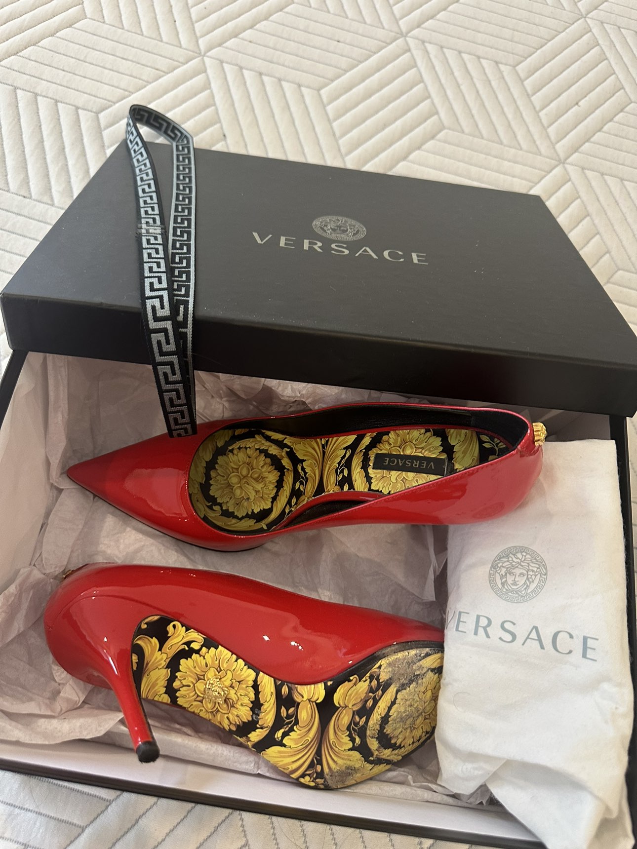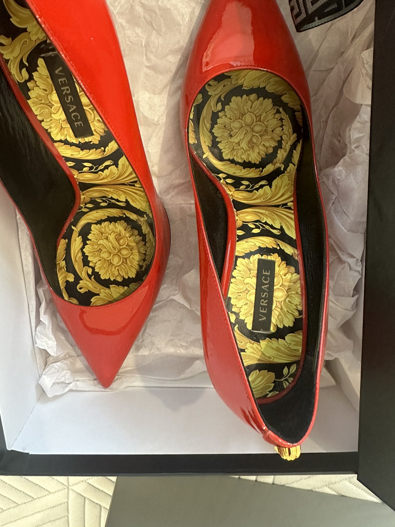 Buy & SellVersace Red pumps/heelsVersace Red pumps/heels$350Worn 2 times, comes with original box and dust bag as well as Versace gift elastic.ConditionLike newSize38 BrandVersaceWHERE TO MEETKeith road EastView MapSELLERIreneGrand Boulevard412 reviews1 chats·2 favorites·68 viewsSEND CHAT TO SELLERHi Irene! I’m interested in your listing.Hi Irene! I’m interested in your listing.Get the Karrot app to chatSign In to chat