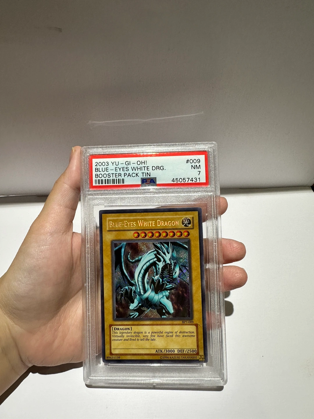 36Certification Number: 45057431 Label Type : PSA with fugitive ink technology Reverse Cert Number/Barcode: Yes Year: 2003 Brand: YU-GI-OH! BOOSTER PACK TIN Sport: TCG Cards Card Number: 009 Player: BLUE-EYES WHITE DRGN. Variety/Pedigree: BOOSTER PACK TIN Grade: NM 7