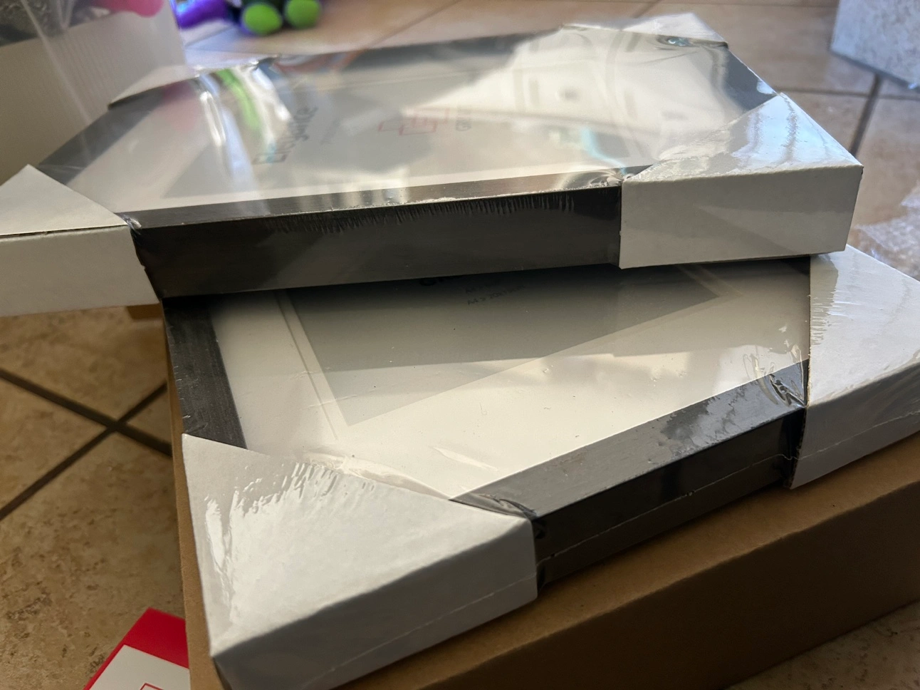 Brand new, found while unpacking but not needed. This is two picture frames, sized 8x6". Includes mats, as pictured. Price is for both frames. Made of wood, stained dark.
