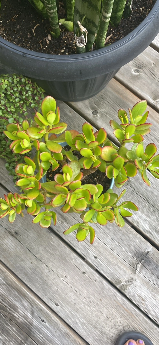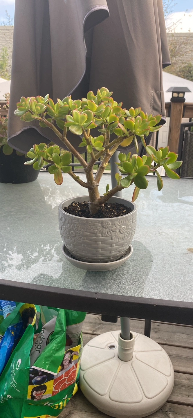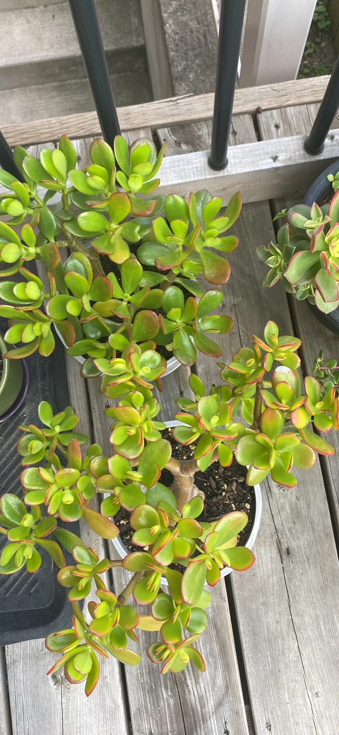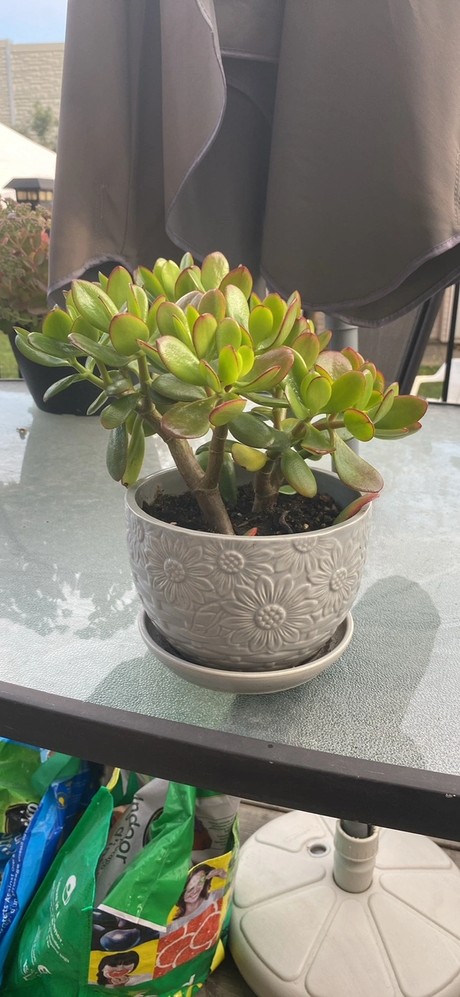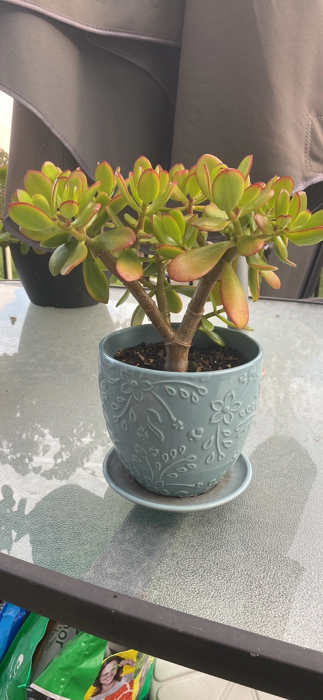 These plants are about 1.5 feet tall in grey & blue ceramic floral pots with built in saucer. $25 each
