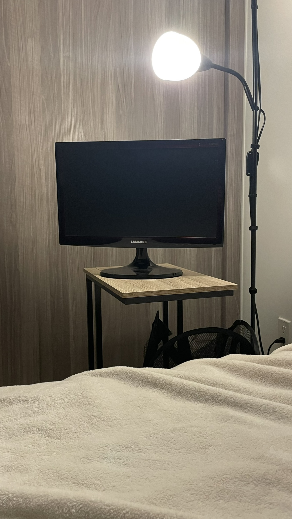 Monitor comes with power cord. The leg part is not perfectly stable but it’s ok for normal use. If you want to get a sub monitor at cheaper price, this would be the best choice for you!