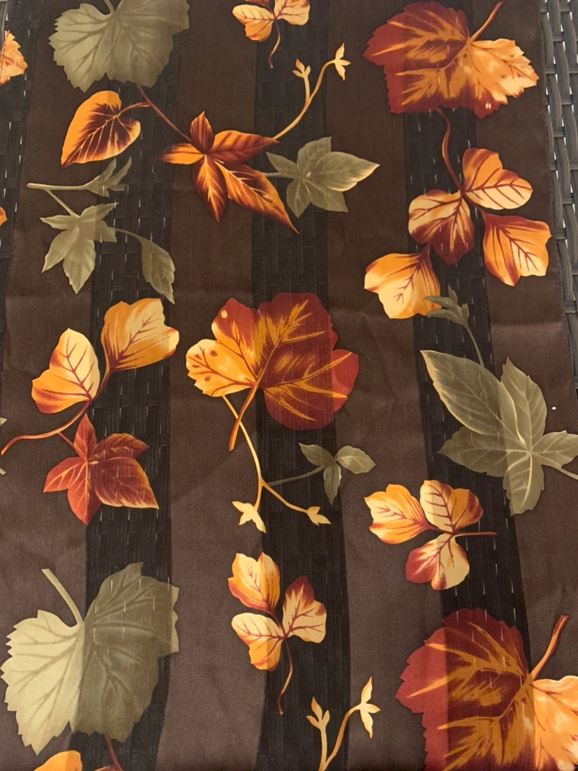 Multi brown leaf scarf in EUC. Longer to be worn as a wrap as a flowing longer scarf or for wrapping and styling as you choose.