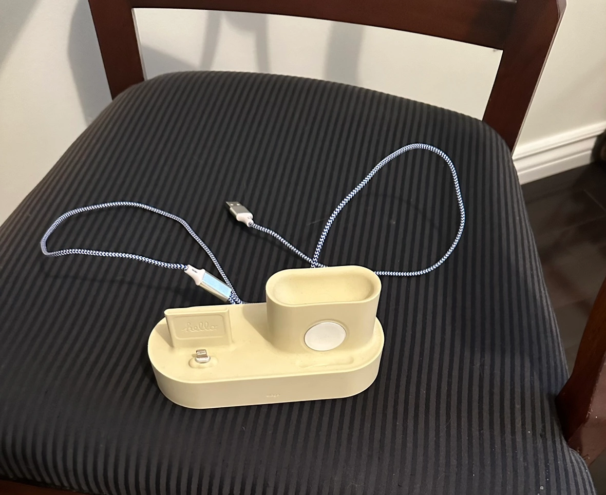 20This charging station has 3 different slots for charging your devices. It includes a USB to lightning cable and a USB to USB-C cable.