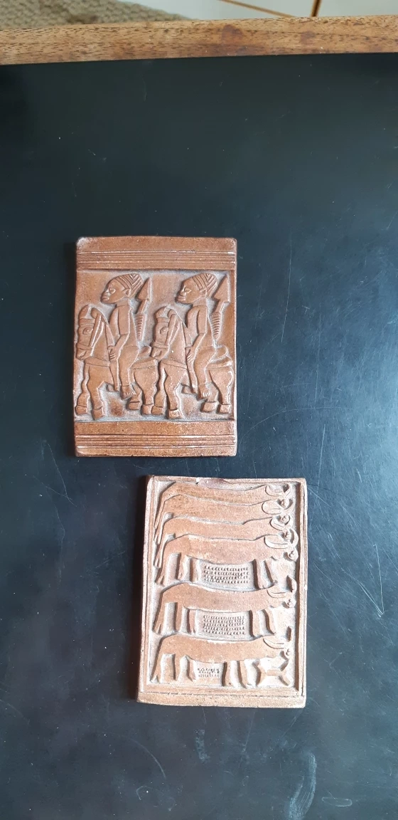828Set of two clay relief plaques Great for display on a shelf or desk