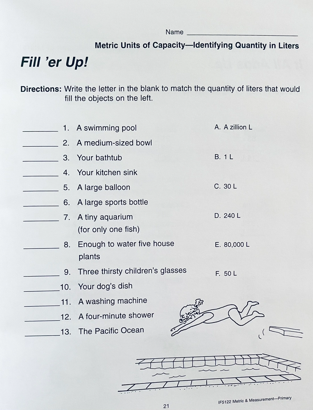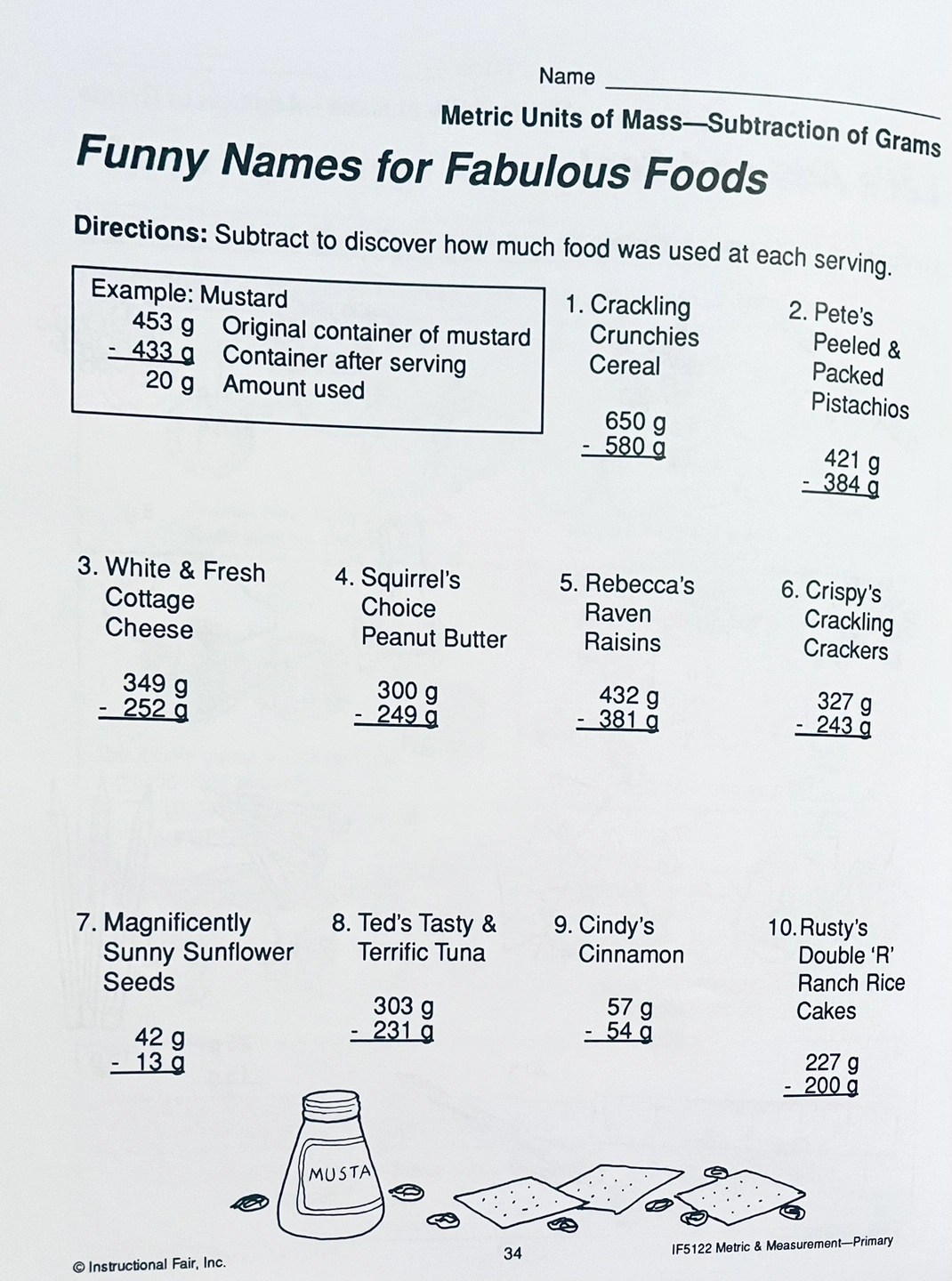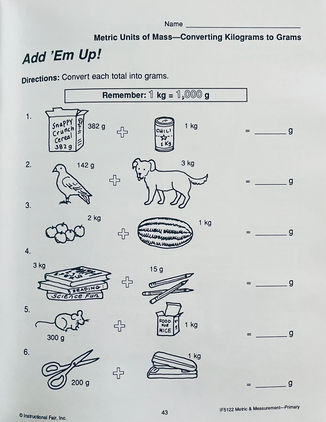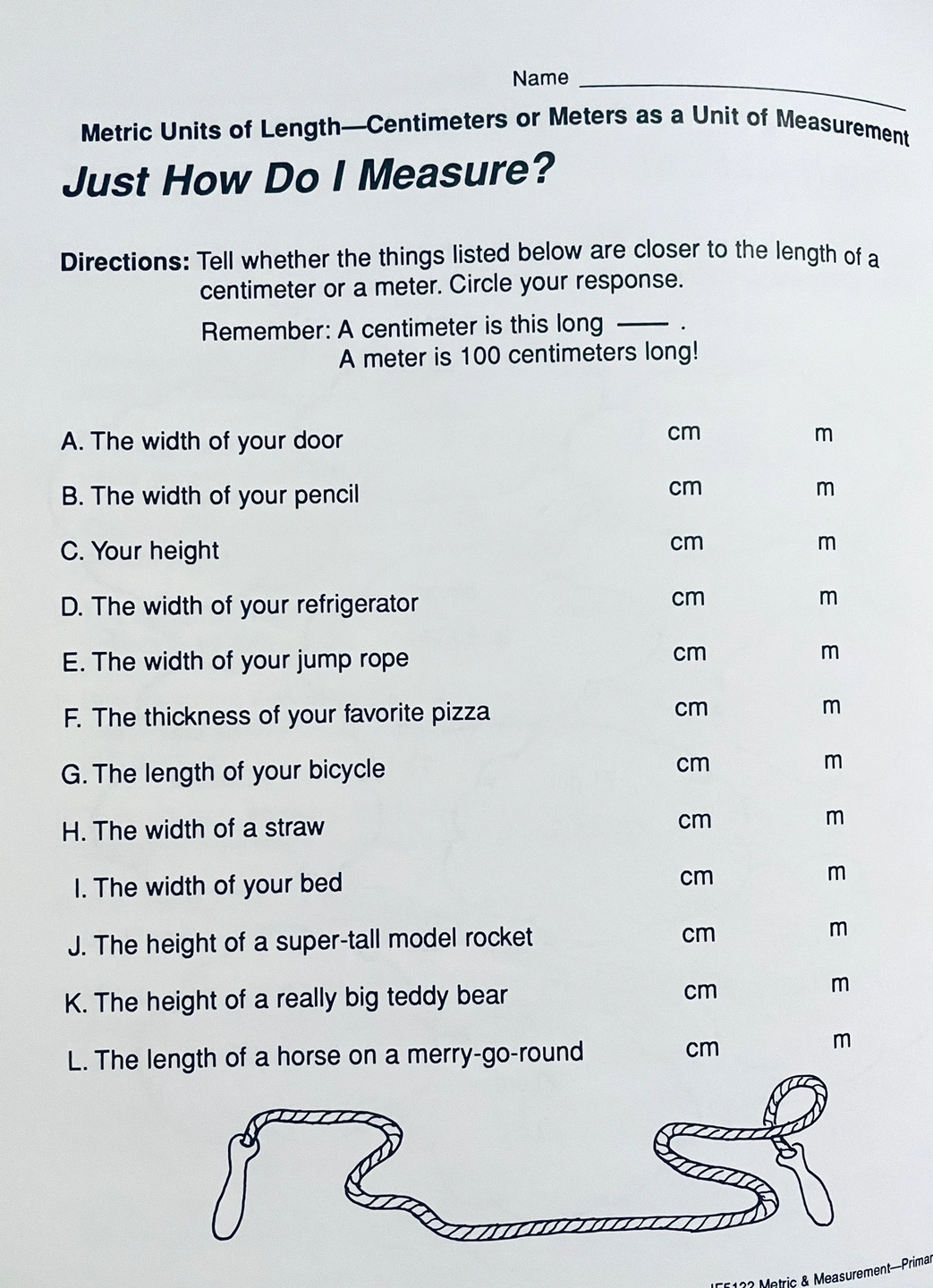 Metric and Measurement is an unused vintage workbook by Bill Linderman for kids to learn about and practice concepts in measurement. Includes: