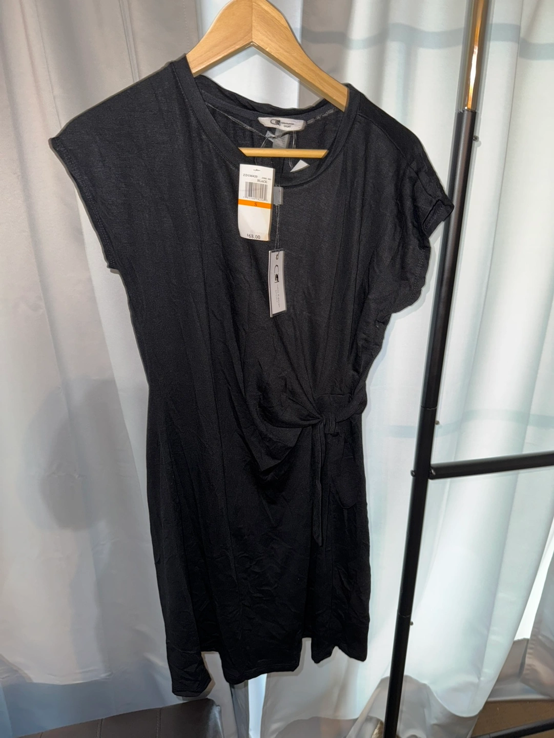 Black T-Shirt dress with tie on the side. Size Small, pictures show material.
