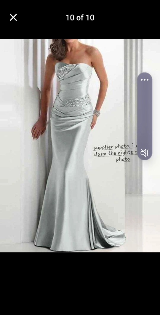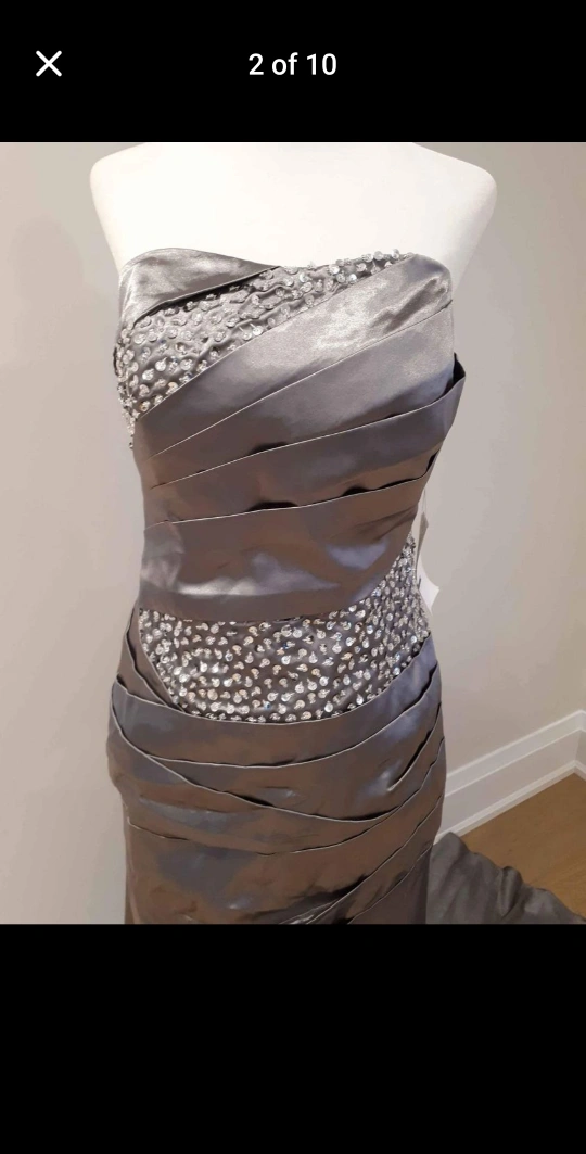 Strapless Silver Beaded Evening Dress