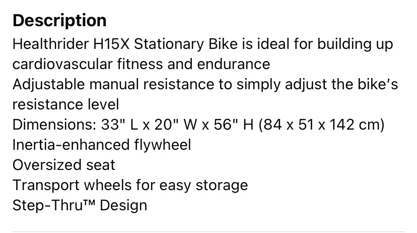 Healthrider H15X Stationary Exercise Bike